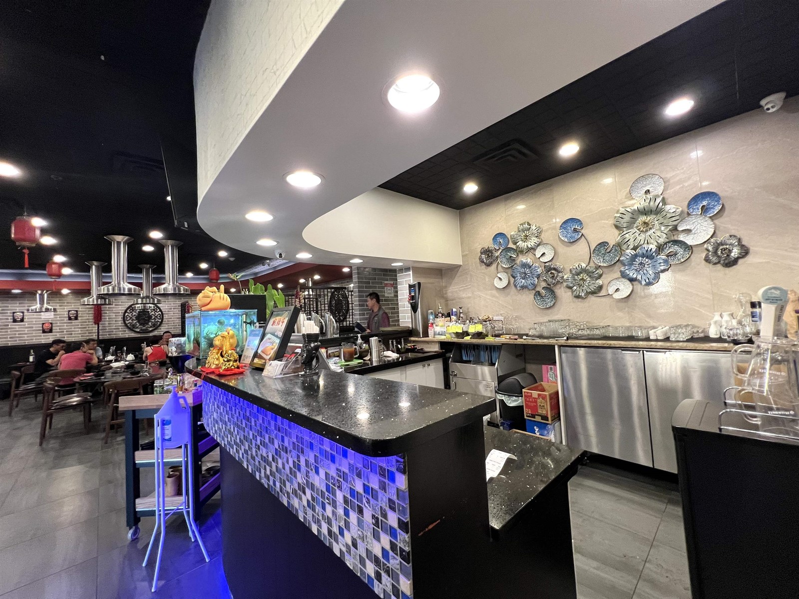 Unbeatable location in Richmond famous food street. Turn key seafood hot pot restaurant operated since 2017. Fully equipped huge commercial kitchen with wok kitchen, stove, freezers, coolers, etc. and venting system for all hot pot tables, easy to add or to convert to any kind of cuisine. 165 seats, has 2 private rooms, liquor licence till 2 am. 5 ground floor units combined together : 4,320 sf. Affordable gross rental $19,500/month including GST, strata fee, property tax and garbage fee. Ample parking space. Lease until May 2, 2025 and landlord willing to extend. No demotion clause. Please do not disturb staff, all showings by appointment only. (id:39665)