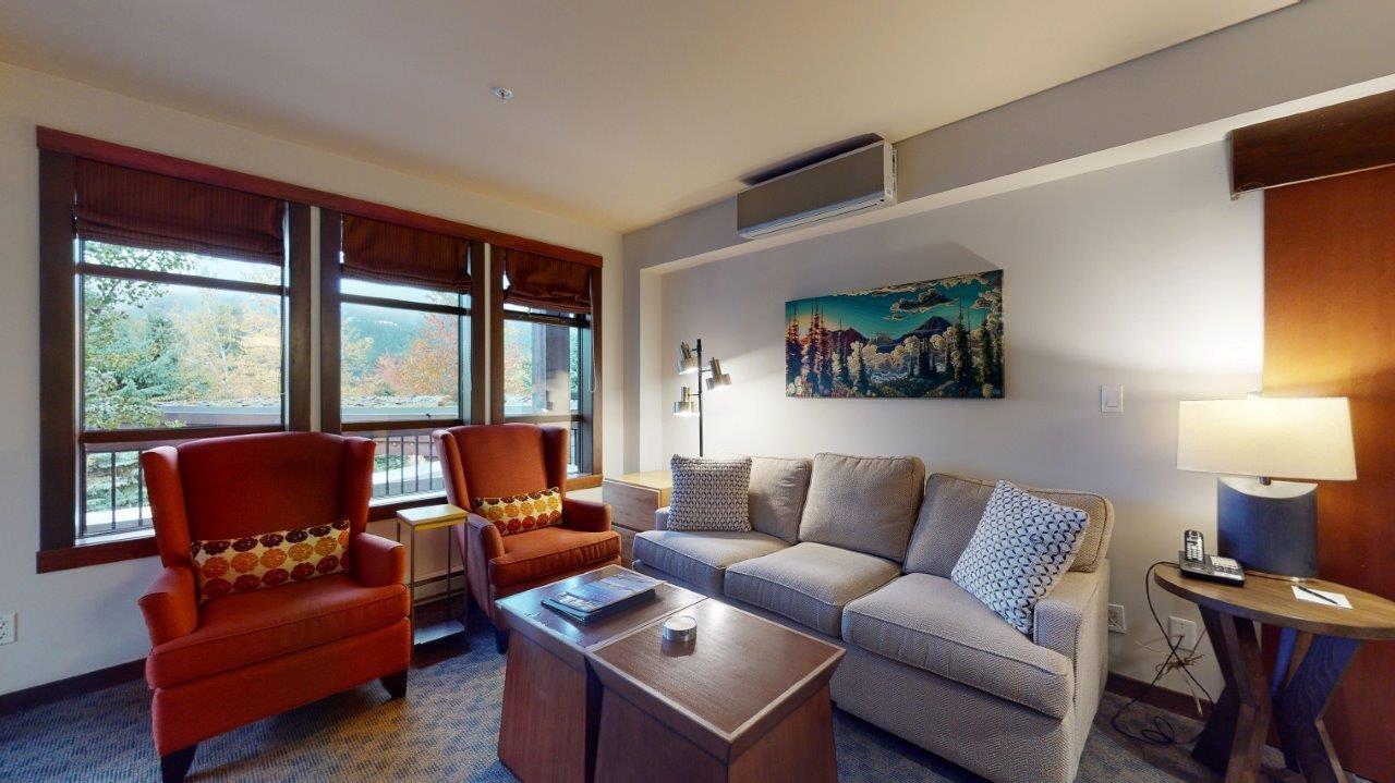 $804.40 MonthlyLuxurious, modern, and sophisticated property just steps from the Creekside gondola and all Creekside amenities. This two bedroom allows for thirteen weeks of owner use or rental income if you desire. With views of the of Whistler Mountain, it is perfect for enjoying a glass of wine on your outdoor deck. Quality finishes throughout; this property features granite counters, Miele appliances, a soaker tub, and a frameless glass shower in the bathroom and in-floor radiant heat under tiles. After a day on the ski slopes relax in the outdoor pool, hot tubs, sauna or steam room, or spend some time with the family in the games room or movie theatre. Strata fees cover property taxes, TW fees, utilities and insurance. This unit has two weeks at Christmas this year to earn great rental income! (id:39665)