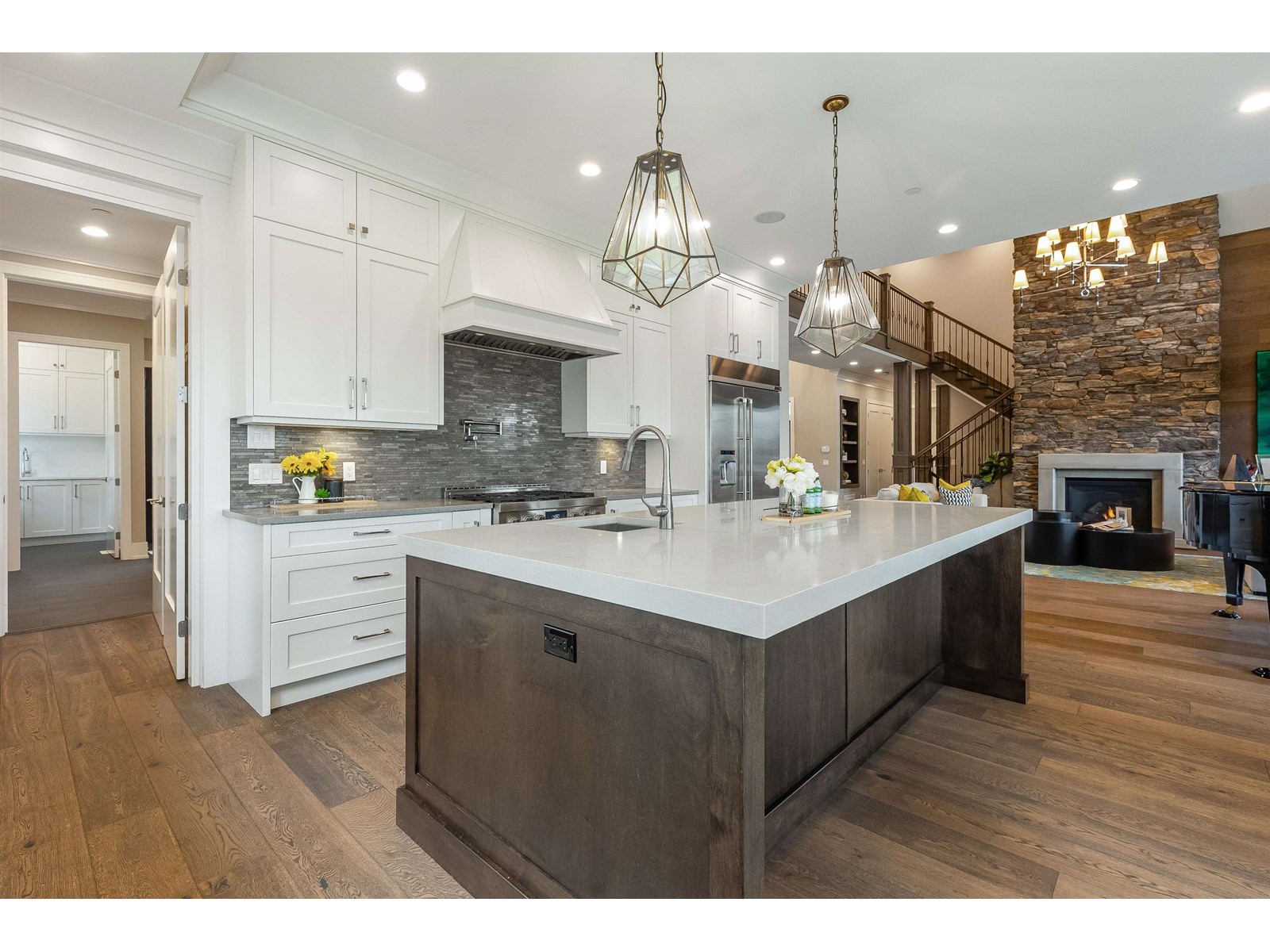 A World Class Estate in the prestigious Academy Park of Maple Ridge. This custom build residence sits on a private park-like Gated 1.08 Acres estate, with Gorgeous VIEW of the Golden Ears Mtn & Forest. Over 6500 sf of luxurious living incl expansive living space on 3 generous levels, 7 bedrms, 6 bathrms, 22ft Ceiling Grt Rm, Gorgeous in/outdoor living, large size gourmet chef's kitchen, wok Kitchen, a magnificent covered summer BBQ & dining area w fire pit outdoor lounge, full walk-out basement, a wine cellar with bar area, and a spacious recreation room, and etc. Interior designed and elevated by Multi-Award Winning Interior Reisa Pollard, well-designed landscape leads the flow of good Feng Shui. Minutes walk to Meadowridge Private School. One of Maple Ridge's finest homes. (id:39665)