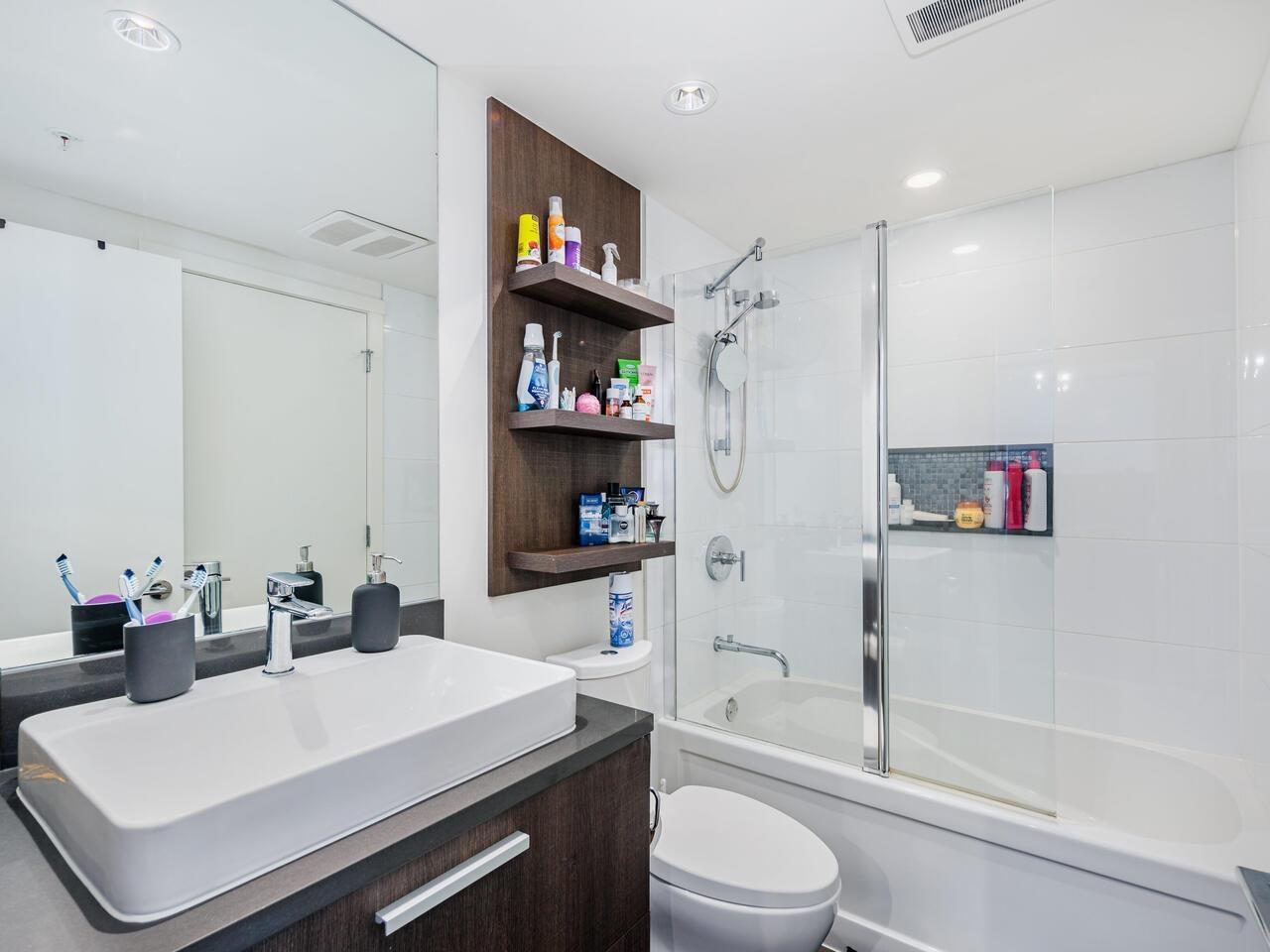 $285.38 MonthlyEvergreen by Bosa ! In the heart of Coquitlam, this North facing 1-Bedroom + Den home offers gorgeous mountain views and comfortable living. Luxury finishes with Italian imported cabinetry, quartz stone countertops, high-end appliances and wide-plank laminate flooring. Over 10,000 square ft of amenity space including entertaining lounge, fully equipped fitness centre, landscaped terrace with BBQ area and fire pit. Steps to Lincoln Skytrain Station, Coquitlam Town Centre Mall, Lafarage Lake, parks, library, banks, schools, restaurants and shops. Comes with TWO parking stalls & 1 locker. Book your private showing today ! (id:39665)
