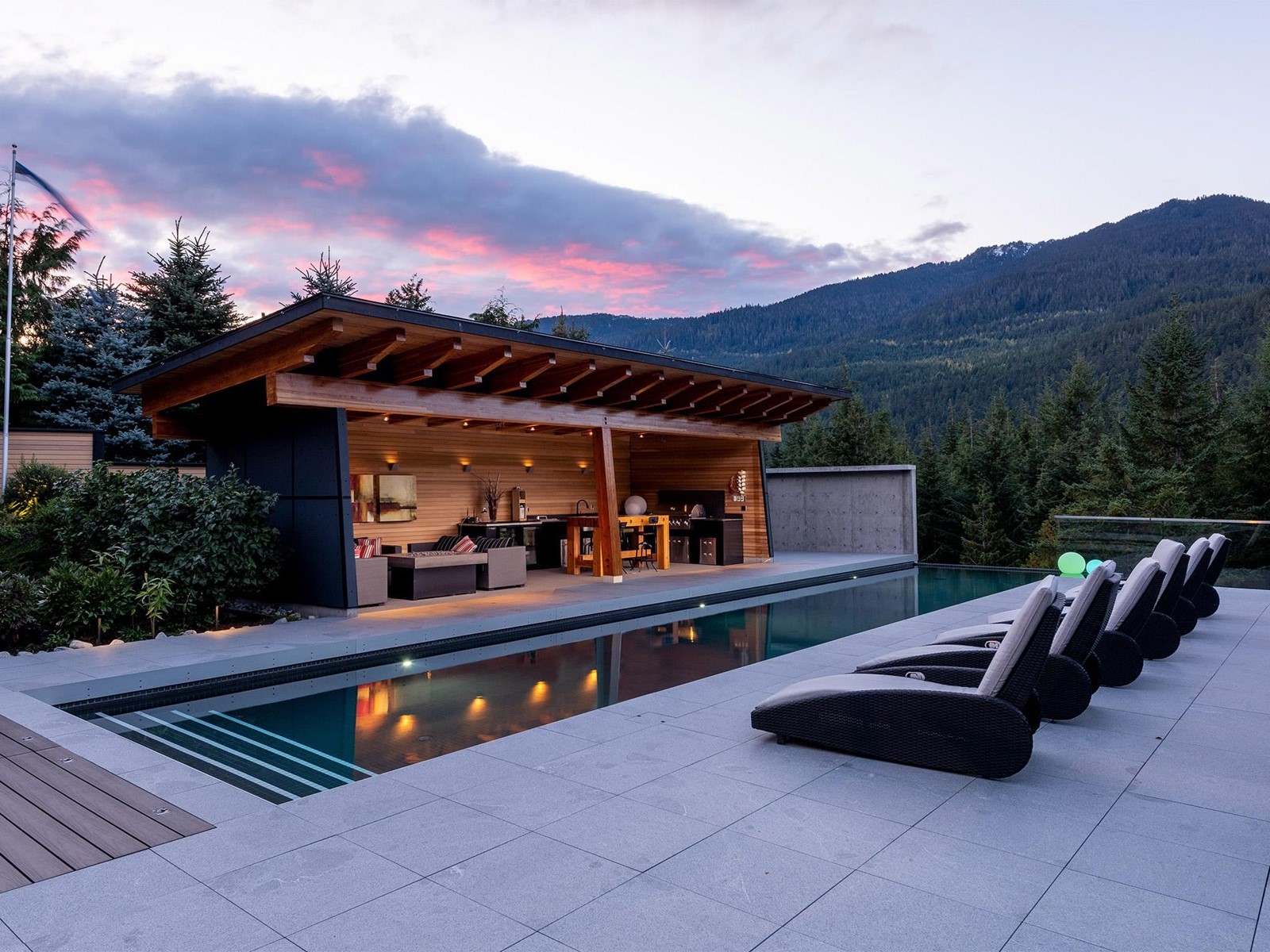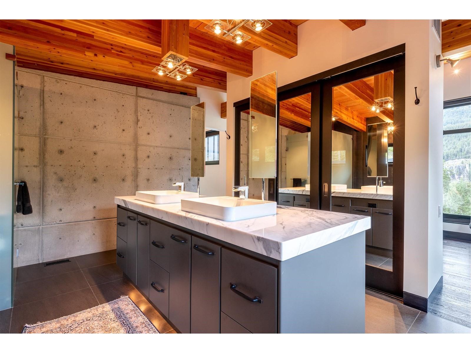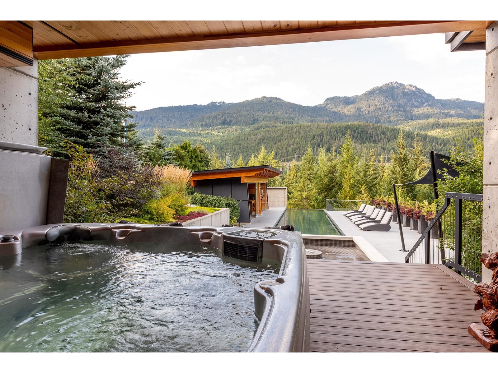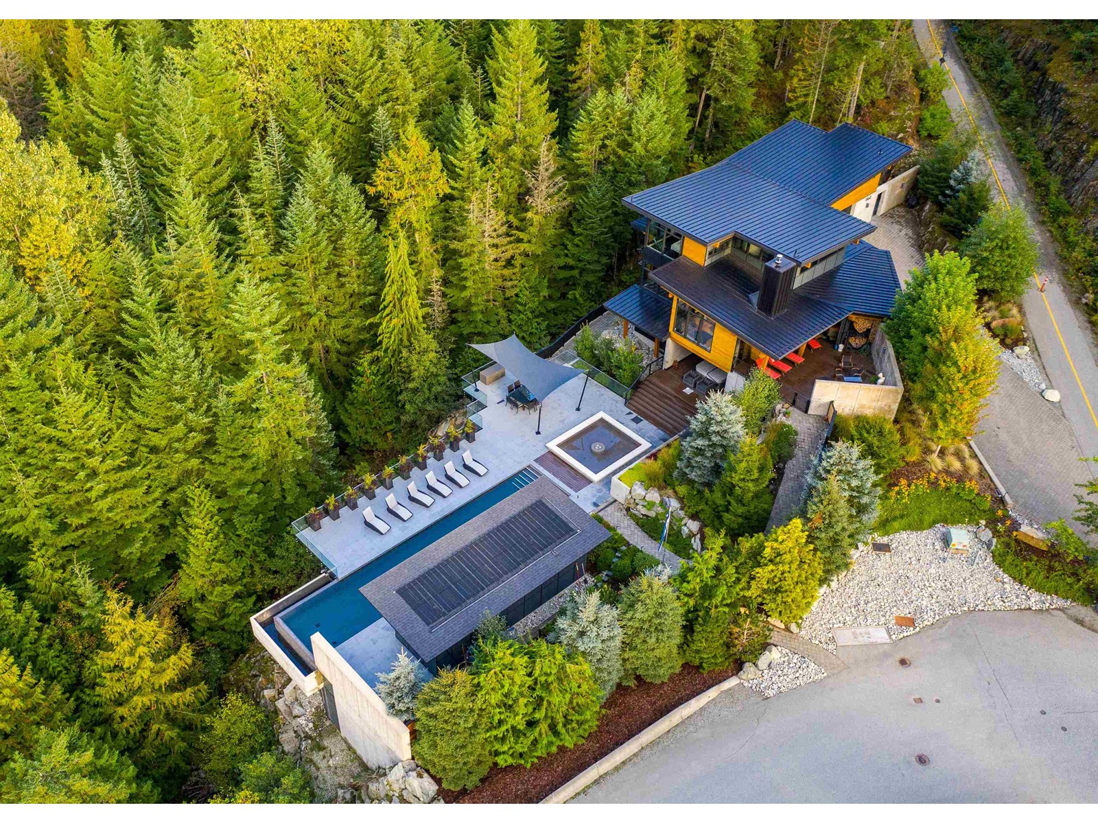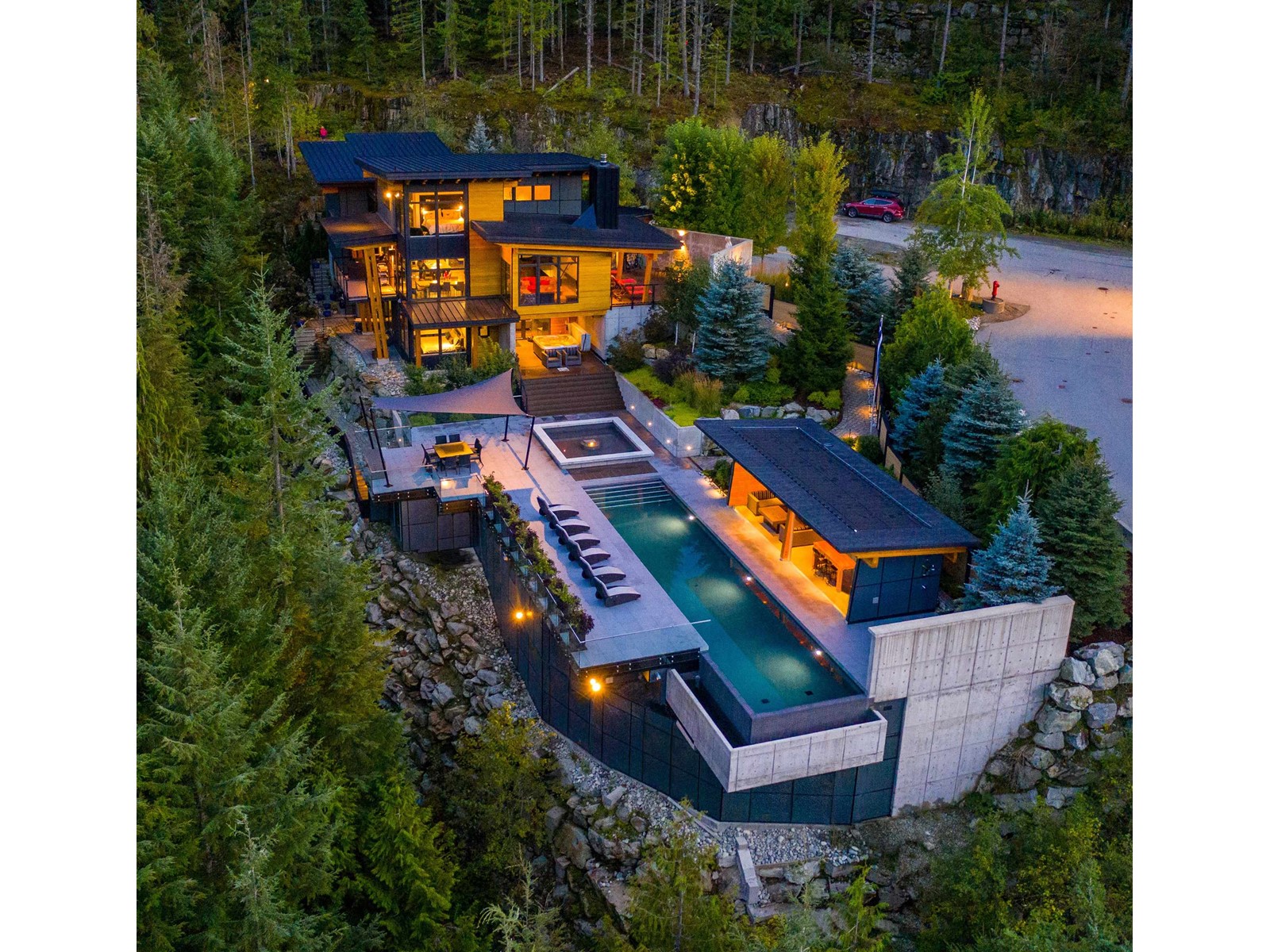 This gorgeous South-West facing architecturally designed mountain modern home has one of the best pools in town and a swanky "cantina", which features an outdoor kitchen including BBQ, commercial beverage fridge, stainless sink, custom dining bar table, comfy sitting area around a gas fire bowl & overhead infrared patio heating for those chilly evenings. This Spring Creek estate is a mountain refuge, an ideal place to escape from the world or throw a fabulous party! The private, 4-story masterpiece holds court, facing its outdoor sanctuary-a 66´ infinity pool that is heated by a sustainable solar system and gas boiler, with fountain jets, night lighting, and adjoining bubbling water fountain pool which doubles as the perfect 'toddler pool´. There is an array of well-appointed, flexible spaces for owners and guests to retreat, including a yoga room, game/billiard/media room, 1,000 bottle wine cellar & a steam sauna with spa shower. A truly exquisite one-of-a-kind mountain oasis! (id:39665)