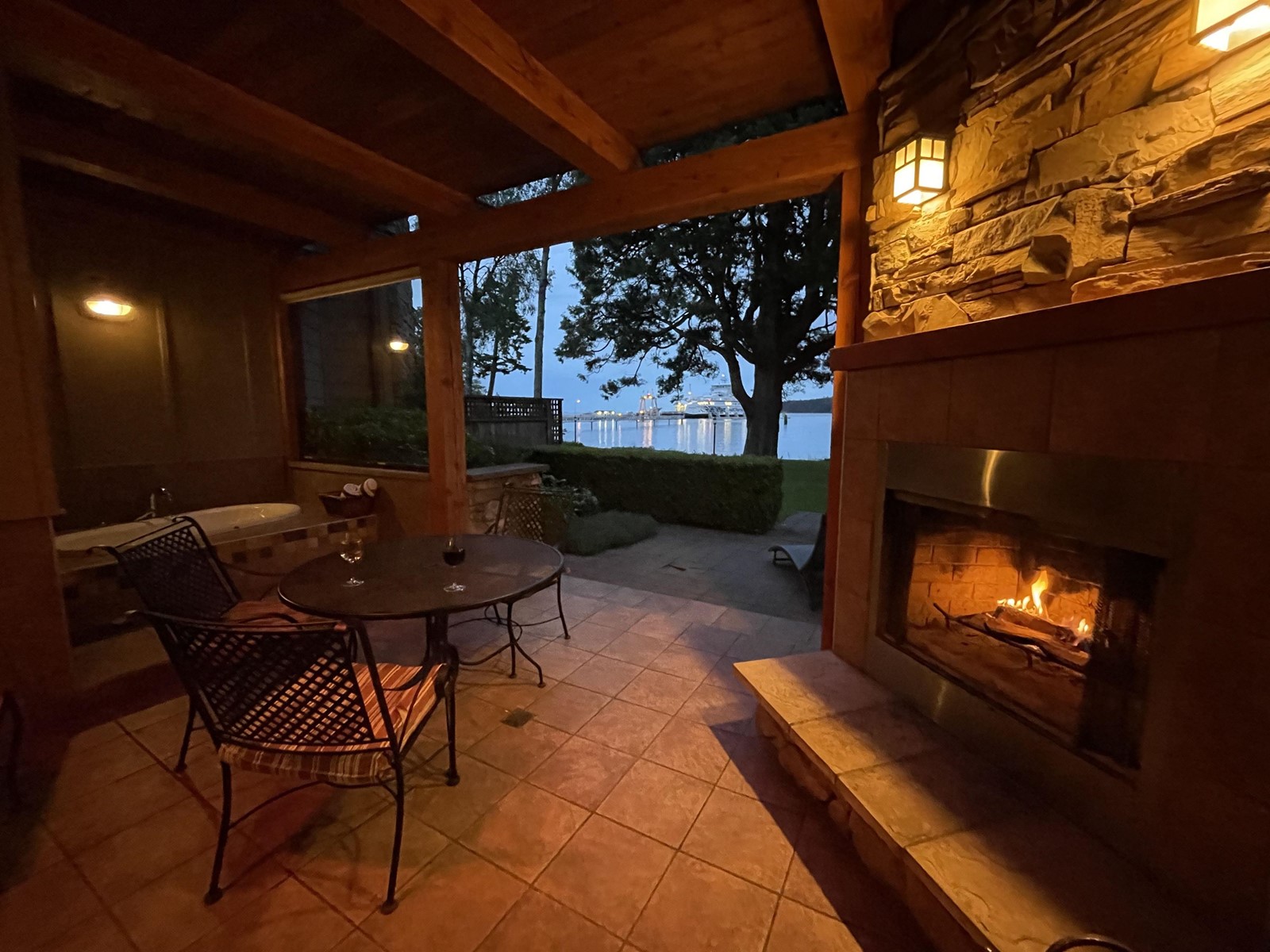 $282.10 MonthlyGulf Island waterfront recreational vacation home. Enjoy up to 6 weeks per year in a luxurious one bedroom villa at the Galiano Inn Resort & Spa. Located beachfront in Sturdies Bay, this 4+ star resort is just a short ferry ride from Vancouver. The ground floor Senora Villa boasts a private covered Jacuzzi tub for two, fireplace, barbecue and dining area. The spacious outdoor patio extends to the lawn, with a spectacular view of the water and sunrise over Mt. Baker. It is complete with a kitchen and dining area, laundry, spacious sitting room with a foldout couch and large screen TV. The king-sized bedroom with TV also opens onto the patio, allowing two couples to stay comfortably. Other amenities include: moorage, smart cars, gym, fine dining restaurant and seasonal outdoor pizzeria. (id:39665)
