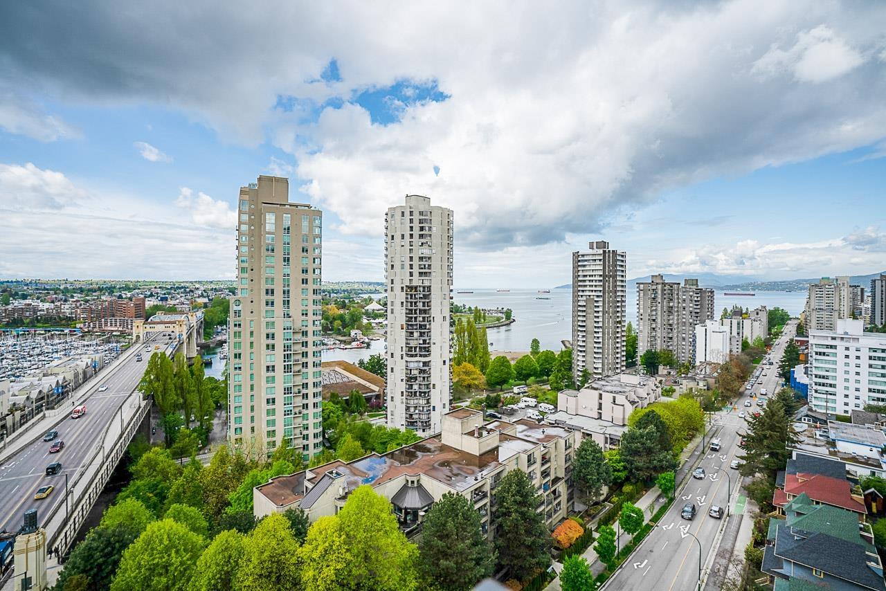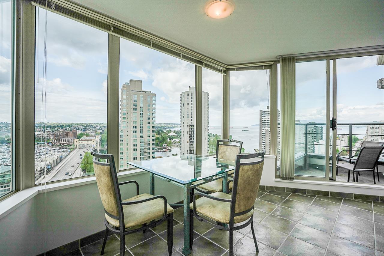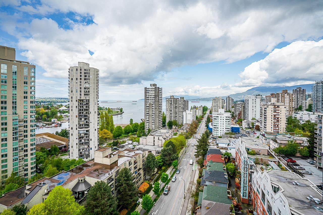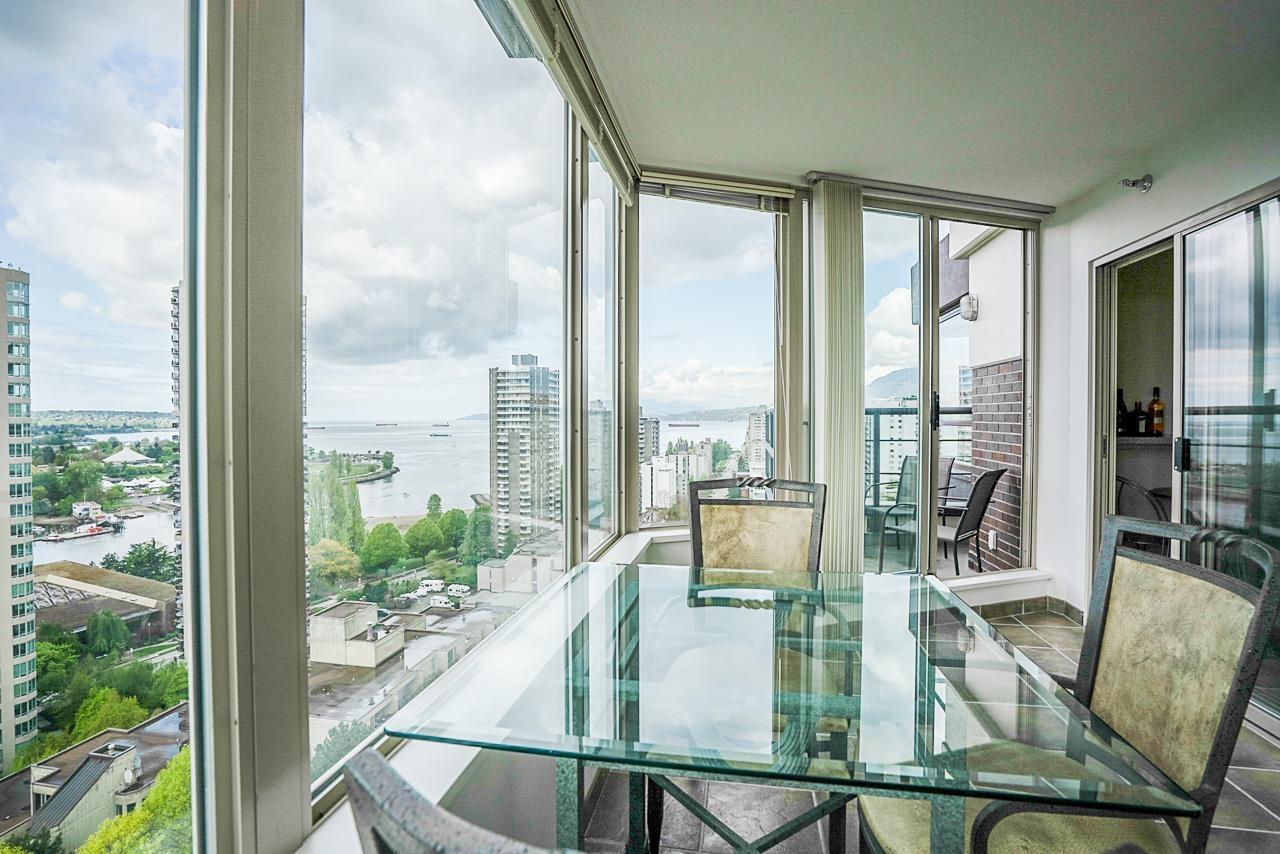 $873.16 MonthlyWelcome to this meticulously maintained, one owner, 2 bedroom, 2 bathroom, concrete unit located on the 18th floor of the centrally located SeaStar building. With 4 separate entrances onto the 2 patios AND the large solarium, this unit takes advantage of its South West orientation, letting in an abundance of natural light and capitalizing on the incredible views of English Bay and False Creek. Featuring in-suite laundry, gas fireplace, parking, and a large in-suite storage room this unit is incredibly desirable. Building amenities include meeting rooms, a games room with a pool table, private courtyard, guest suite, and a gym. Located close to transit, the Stanley Park Seawall, Sunset Beach, and all that Downtown Vancouver has to offer! (id:39665)