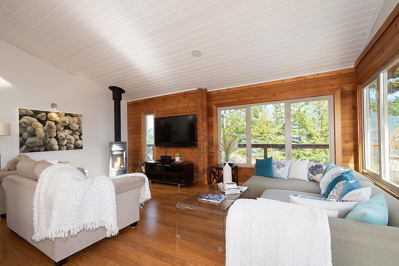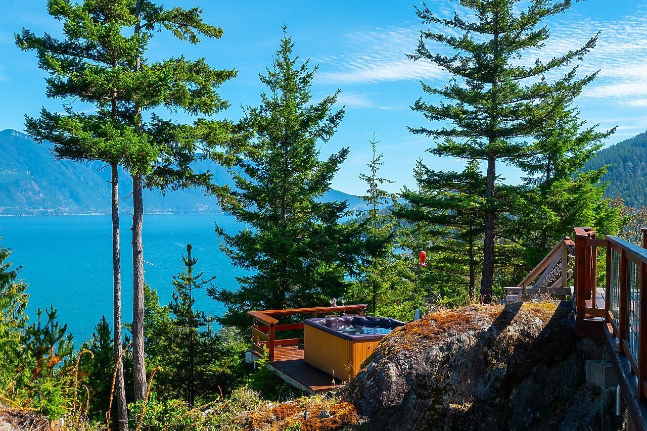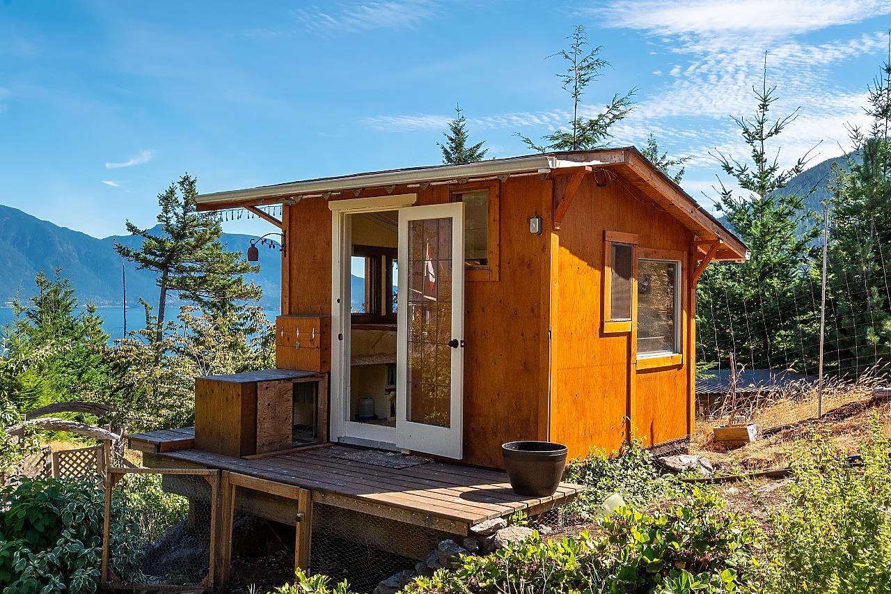 This stunning waterfront home and property overlooks Brigade Bay and features one of the best views on Gambier. This two bed, two bath immaculate and beautifully-finished Panabode sits on 6.1 acres, with wrap-around deck, covered outdoor kitchen, and everything needed for comfortable year-round and full-time off-the-grid living. Soak in exceptional views of the North Shore Mountains from the hot tub and "prow" - complete with fire table and hammocks. Also featuring a detached yoga studio, luxury chicken coop, unfinished office, fenced gardens and plenty of privacy. Nearby access to a sheltered dock for your boat, and close to the beach and the trails to Long Bay, Burt´s Bluff, Lost Lake and Mt Artaban. (id:39665)