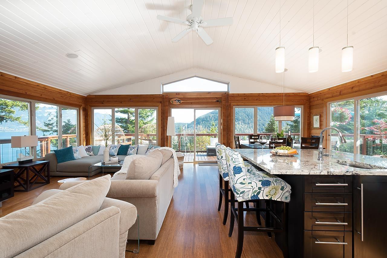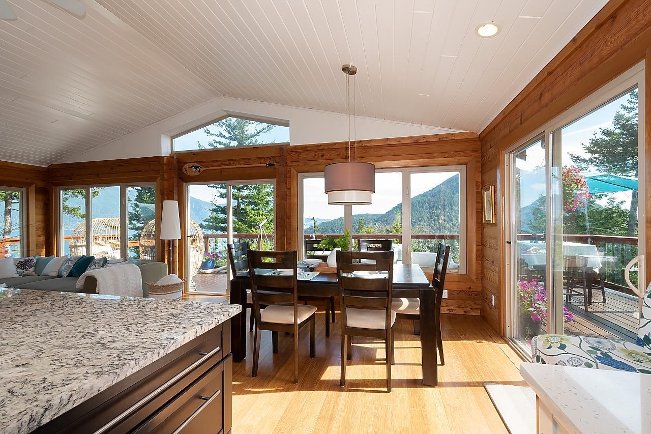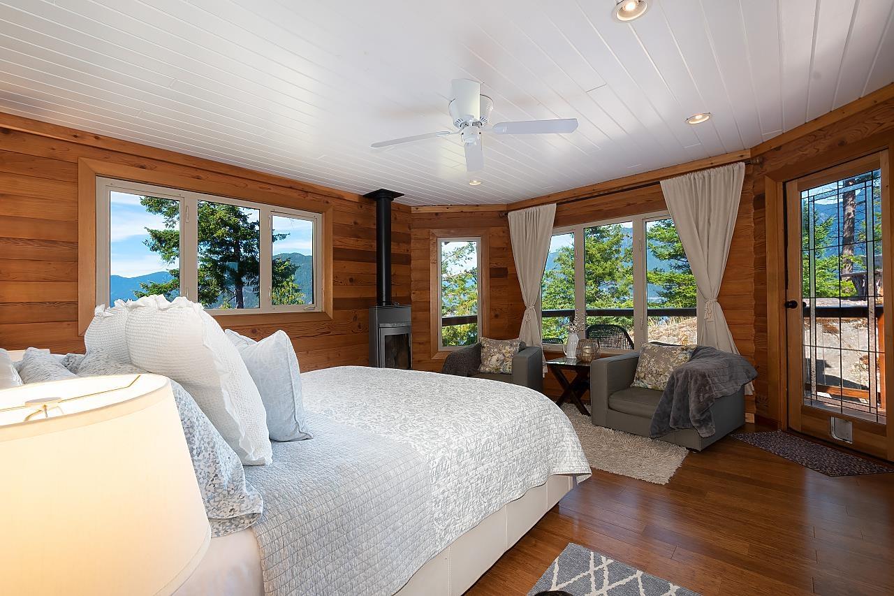 This stunning waterfront home and property overlooks Brigade Bay and features one of the best views on Gambier. This two bed, two bath immaculate and beautifully-finished Panabode sits on 6.1 acres, with wrap-around deck, covered outdoor kitchen, and everything needed for comfortable year-round and full-time off-the-grid living. Soak in exceptional views of the North Shore Mountains from the hot tub and "prow" - complete with fire table and hammocks. Also featuring a detached yoga studio, luxury chicken coop, unfinished office, fenced gardens and plenty of privacy. Nearby access to a sheltered dock for your boat, and close to the beach and the trails to Long Bay, Burt´s Bluff, Lost Lake and Mt Artaban. (id:39665)