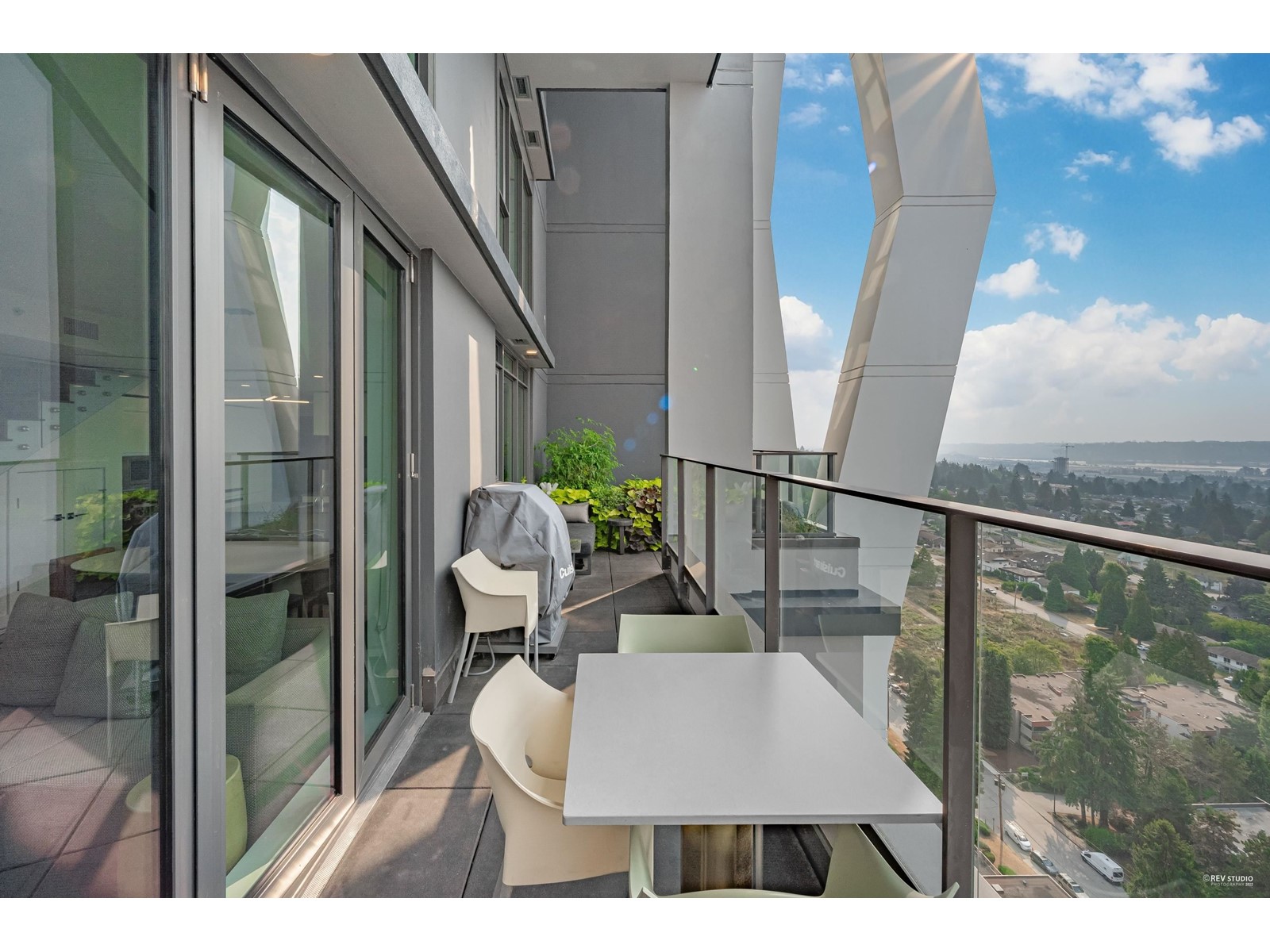 $554.41 MonthlyAMAZING CITY AND FRASER RIVER VIEWS! A rare, South facing, 2 level, 2 bedroom, 3 bathroom SkyHome in Hensley by Cressey! Air Conditioning! Open floorplan with overheight 9' ceilings on Main level. Living, Dining, Kitchen & Powder Room on Main. Staircase with glass railing to 2 beds & 2 baths upstairs. Primary bed has large walk-in closet. Upgraded features incl Acacia hardwood floors & Miele appliances. Cressey Kitchen TM with lots of storage incl pantry, large island & double Blomberg fridge. Quartz countertop & porcelain slab backsplash. Nano doors fully open to Huge 290 sqft patio w/built in planter & gas bib. Spectacular penthouse amenities; outdoor pool; steam/sauna; gym; concierge. Central location by Lougheed Mall & SkyTrain, highway, Vancouver Golf Course, Lower Hume Park & trails to Burnaby Lake. 2 side-by-side parking ( EV ready) & 1 storage. Open house Oct 22 2-4pm. (id:39665)