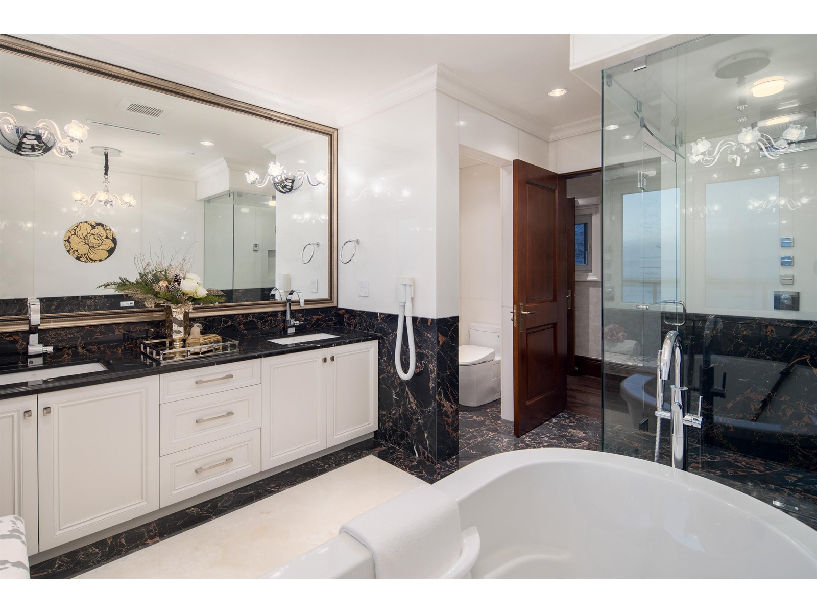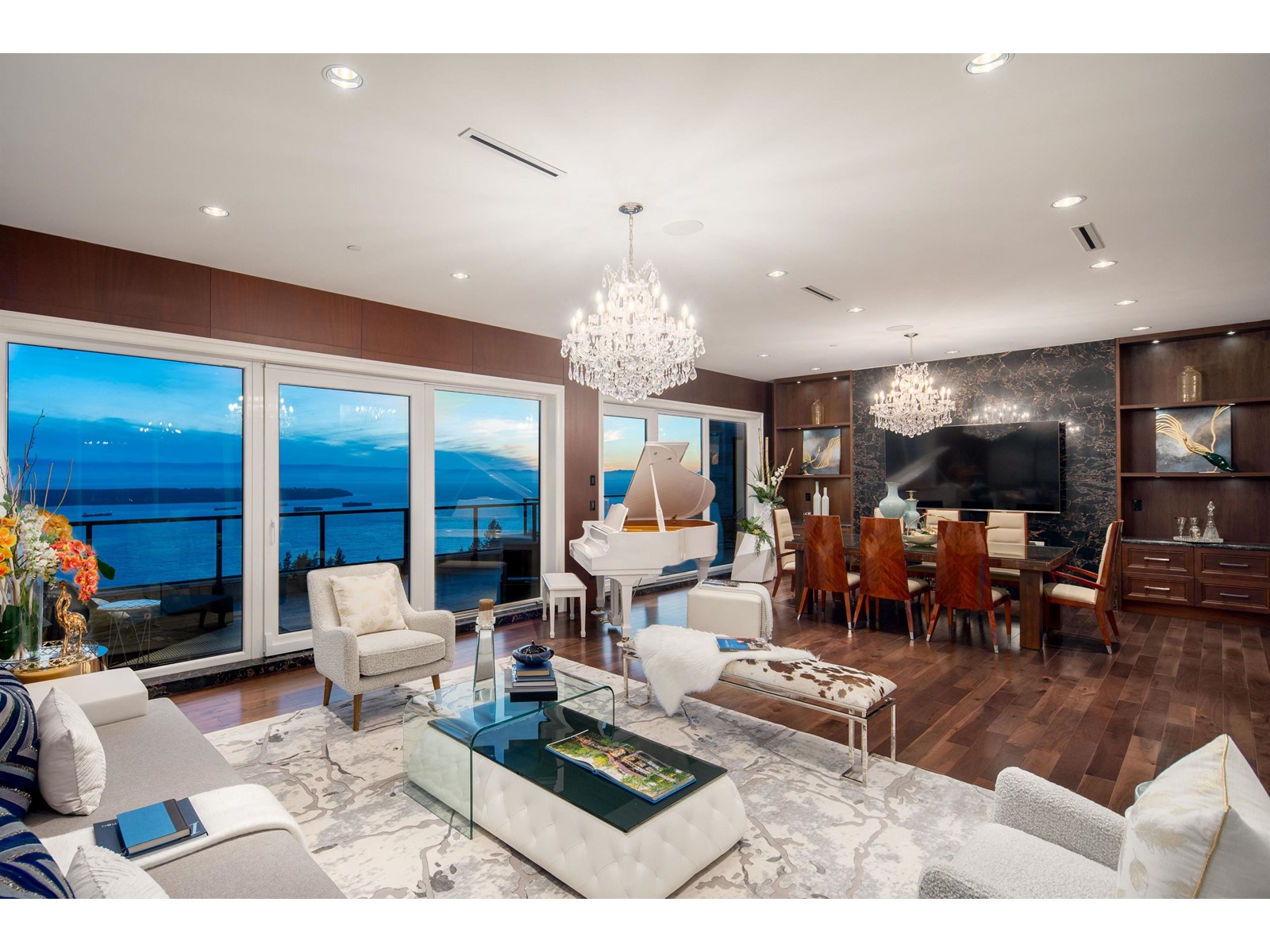 Amazing unobstructed panoramic DT, Stanley Park, Lions Gate Bridge, UBC & Ocean View! Custom built Luxury 6675 sf sweet home on 14000sqft lot with stunning ocean views from all 3 levels. Flat driveway, water fall and fountain welcomes you to the home. Hardwood floor, with generous applied wood panel and most expensive European natural stones. Smart home with most expensive Crestron system connected with lighting, curtains & sound system. 4 bedrooms all on-suite, home theatre, office, open kitchen and wok kitchen. Indoor swimming pool, wine bar and wine cellar. Easy Access to Park Royal Shops Restaurants, Recreation, Ski Hills, Mulgrave School, Country Clubs & Community Centre. (id:39665)