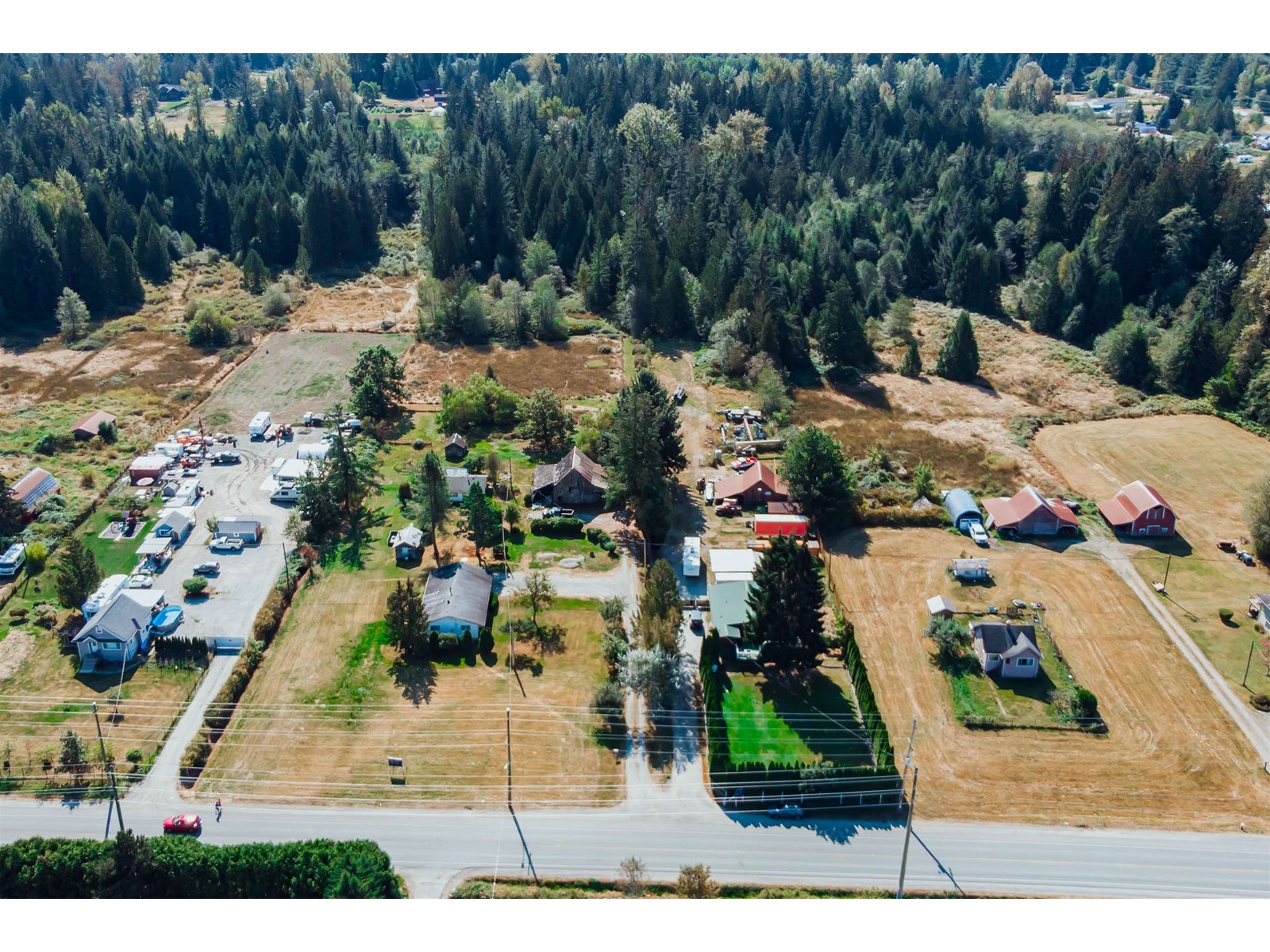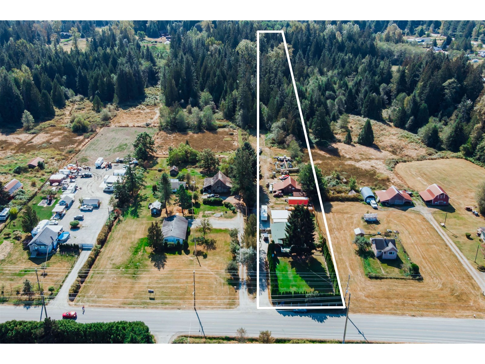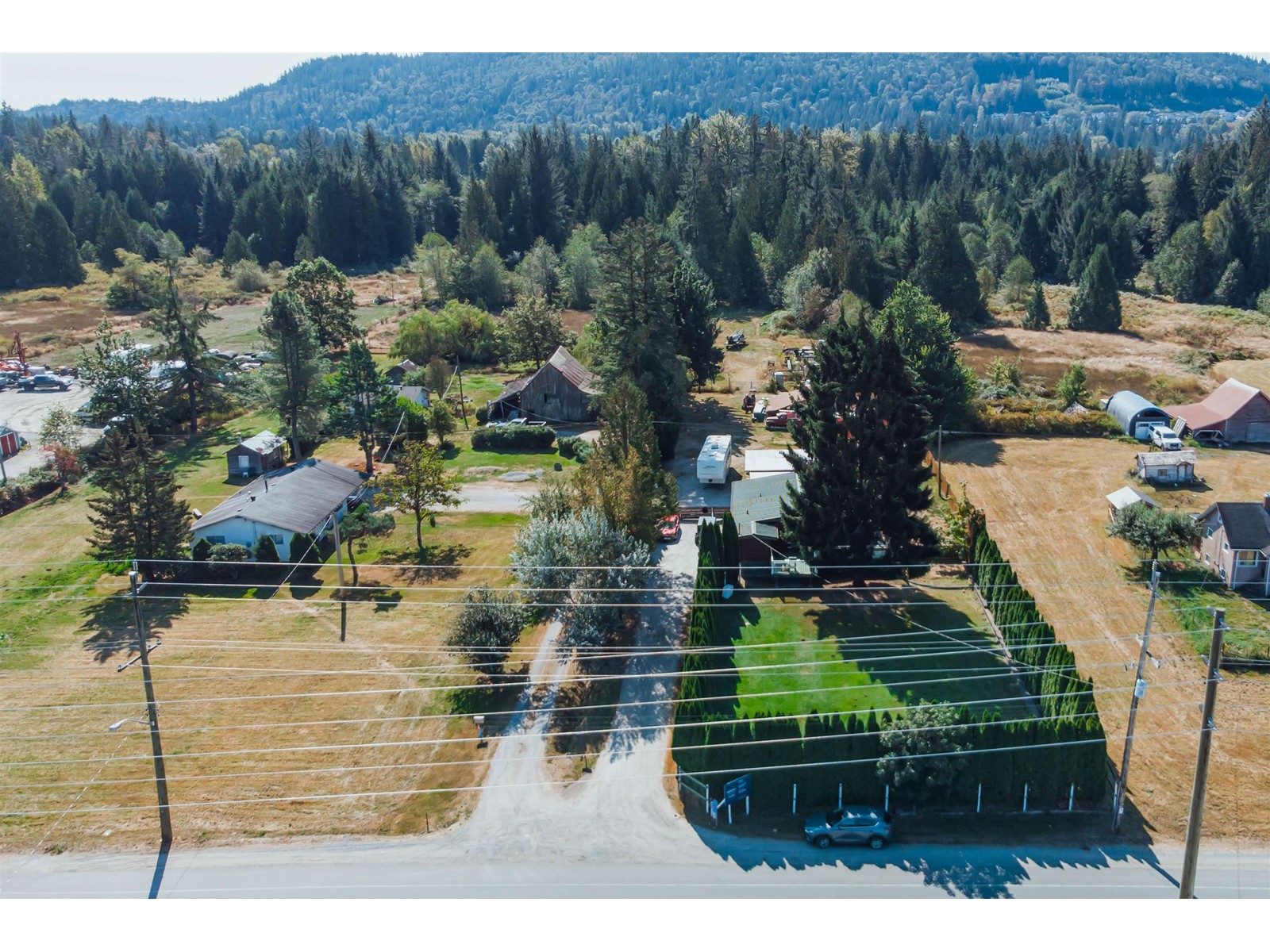 A Maple Ridge acreage centrally located between Maple Ridge and Mission in a fast growing area. The 1,360 sf rancher has three bedrooms, two bathrooms, a spacious living room, gas fireplace, and galley kitchen. The primary bedroom features a three piece ensuite, while the two other bedrooms share a four piece bathroom. The home's large windows fill it with natural light, while the home's sundeck overlooks the property's three flat acres to mountain views. The yard has a privacy hedge shielding it from Dewdney Trunk Road, plenty of parking, a detached double garage, and an older barn. As growth in the area continues, this property presents an excellent investment opportunity. (id:39665)