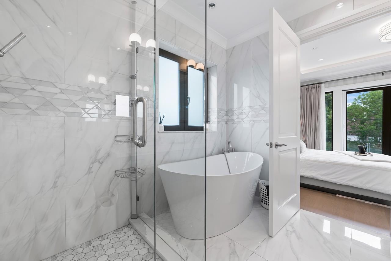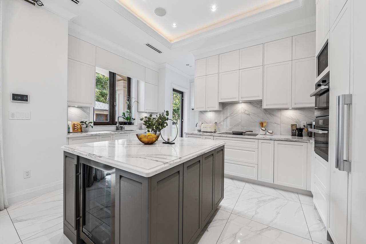 Truly stunning luxury custom home in prestigious Kerrisdale area, situated on tranquil tree-lined street and a flat south facing 7,920 sf lot with 6 beds +7 baths. Amazing craftsmanship throughout. Functional layout featuring tons of details. This beautiful home features 4 spacious Bedrooms upstairs with all ensuite bathrooms; main floor includes a formal dining area, a wok kitchen, elegant living room and cozy bright family room; basement is your entertainment paradise featuring large rec room, wine cellar, media room etc. Move in and enjoy your dream life. OPEN HOUSE:2~4PM (Sat) OCT 29. (id:39665)