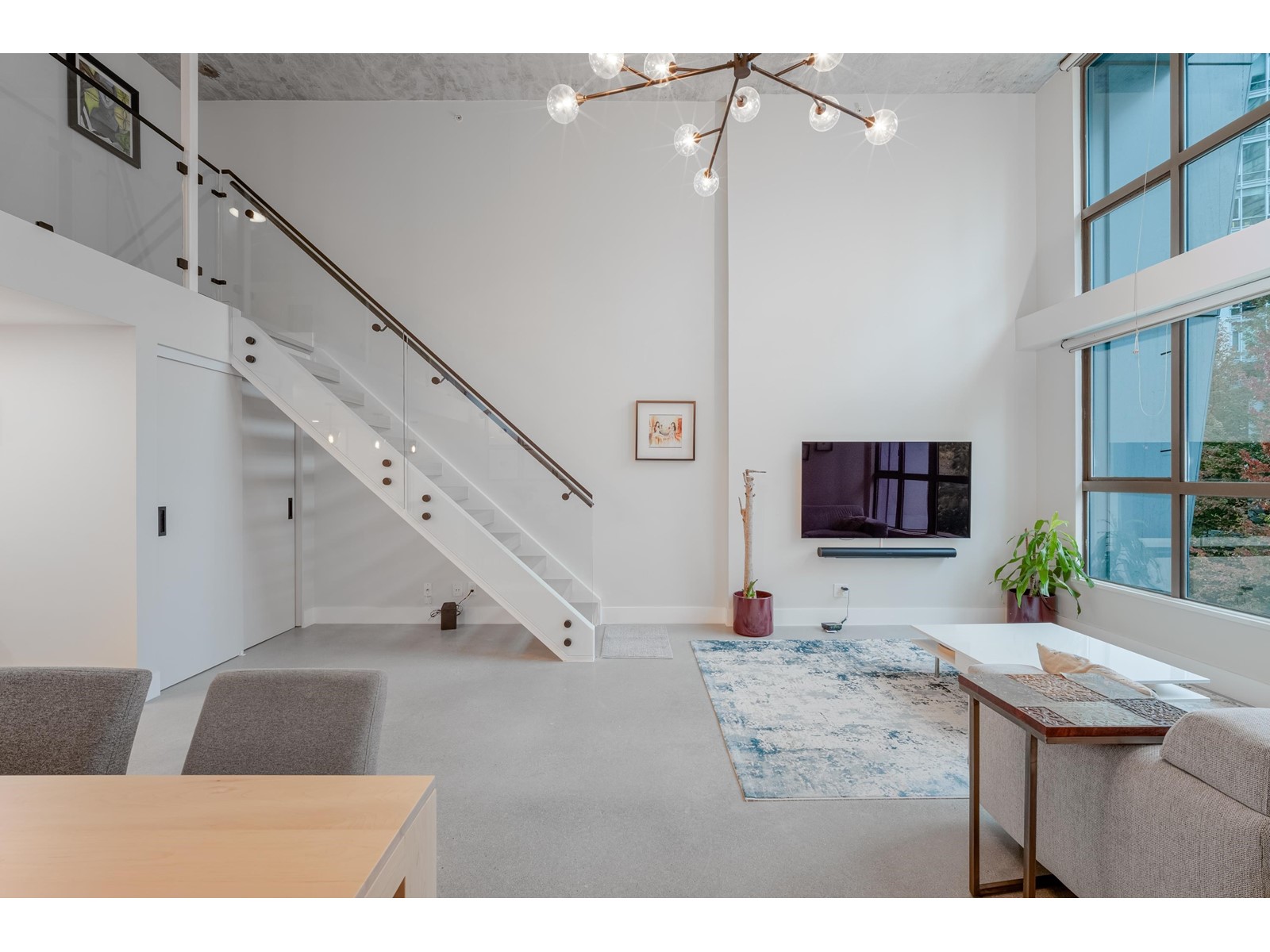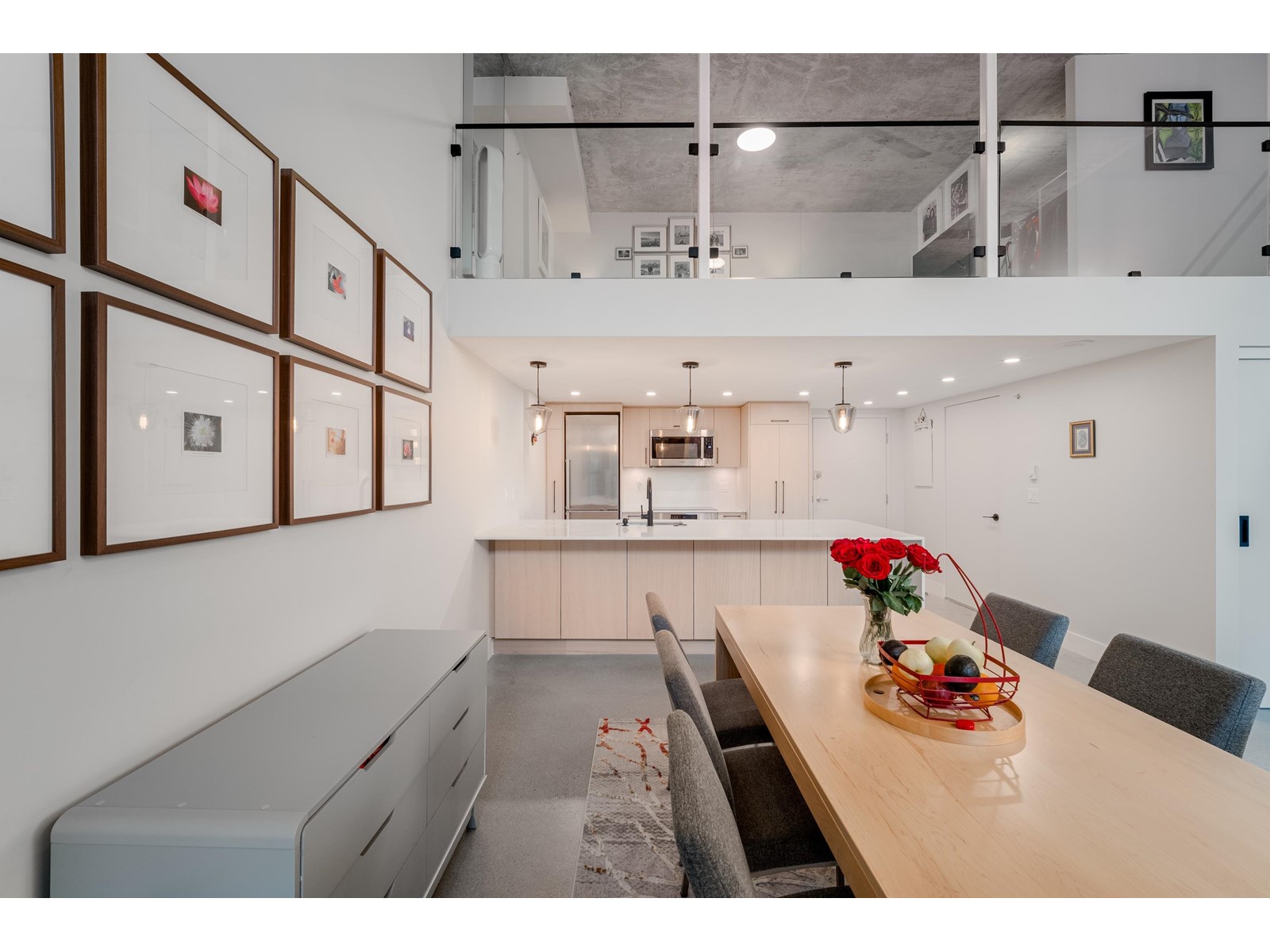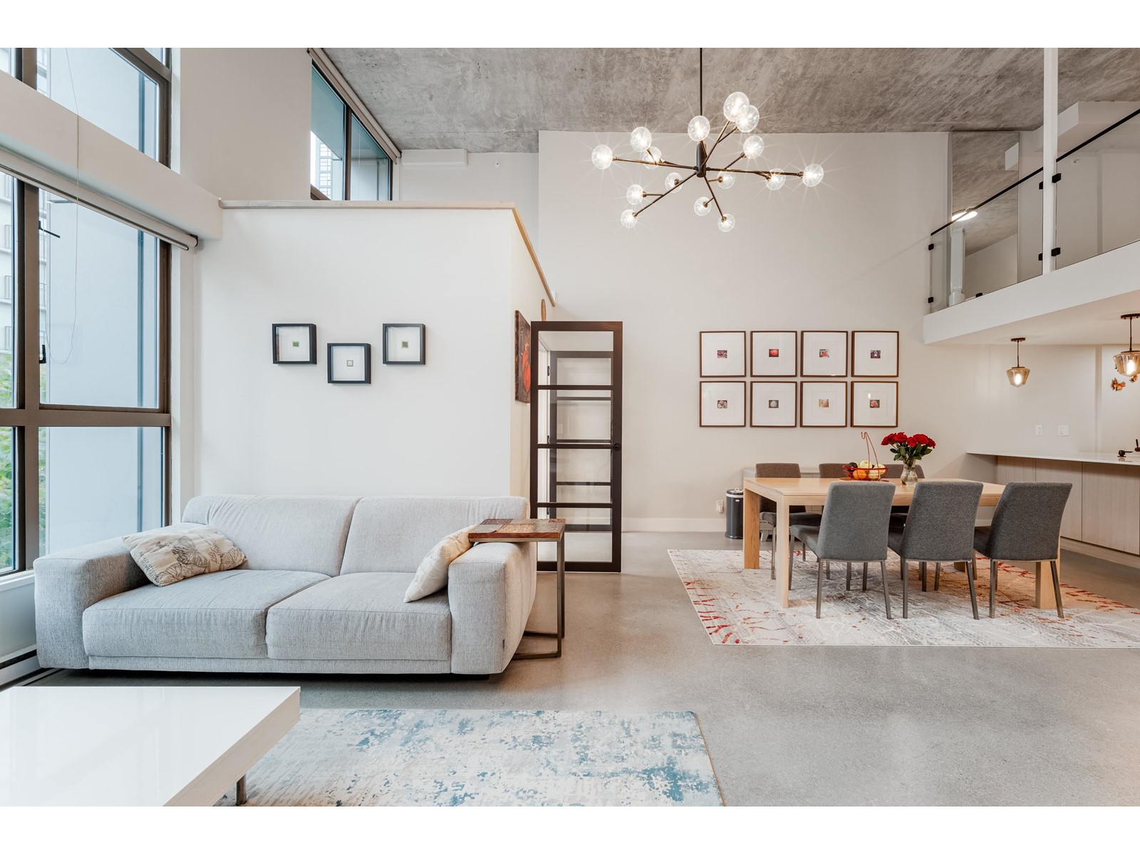 $600.56 MonthlySpacious, sexy & stylish. This 2 level loft has been professionally renovated throughout with newly polished concrete floors and more in over $130,000 in upgrades. The added flex room can serve as an office/den/second bedroom. Soaring 15´ ceilings, double height windows, with following all brand new: custom kitchen with house sized island, bathroom, engineered wood flooring upstairs, Bosch stainless appliances, wood cabinetry & designer lighting. The 280 SF upstairs loft is large enough for king sized furnishings & offers a large walk in closet as well. This home comes complete with dining table, chairs, sofa & king bed. The Space is a very well run building with a healthy contingency, rentals are permitted with a 30 days minimum, 2 pets allowed. This amazing loft comes with 1 parking. (id:39665)