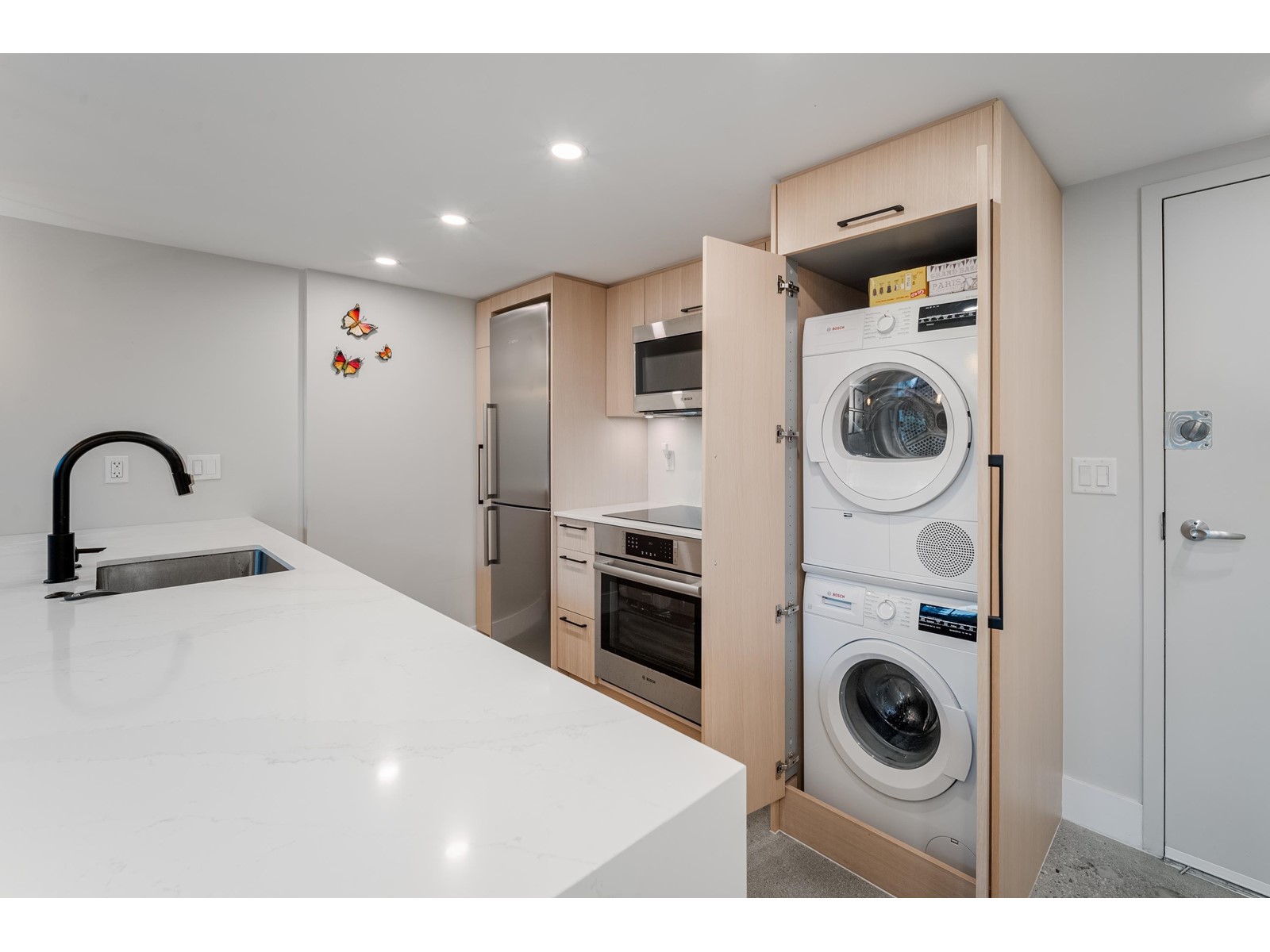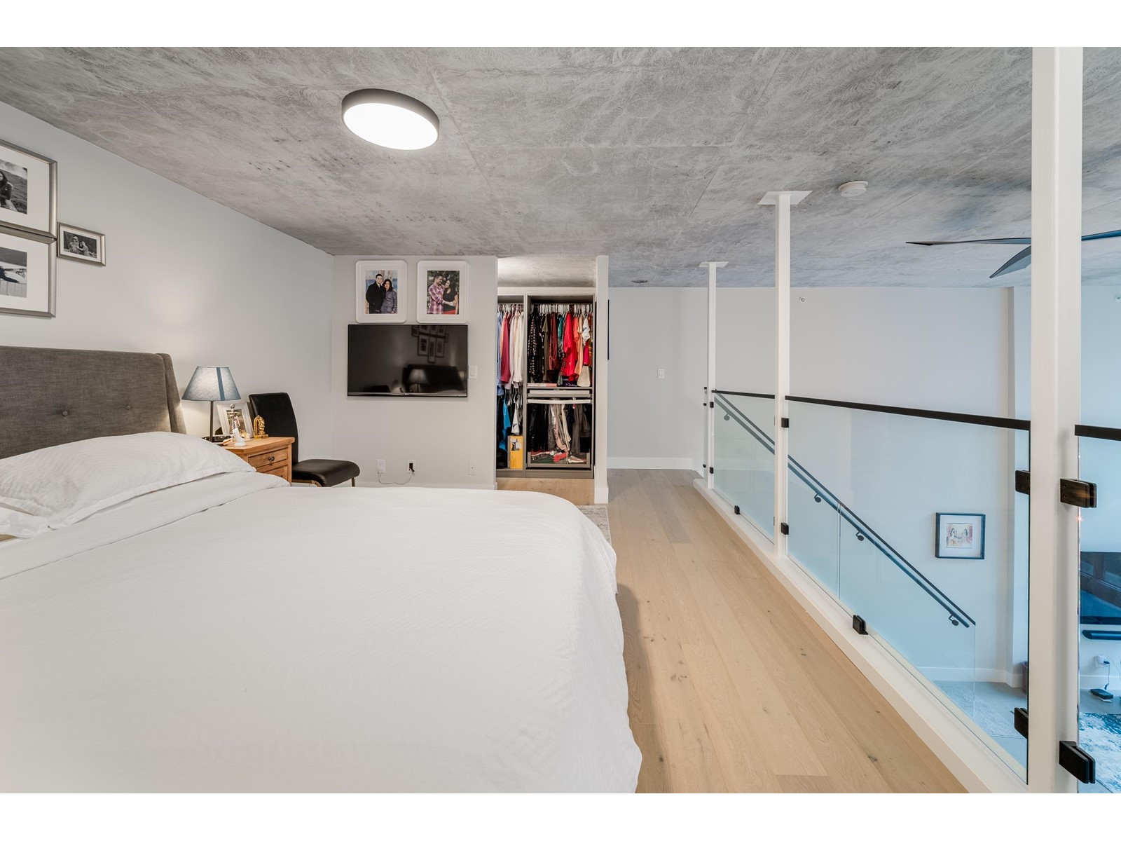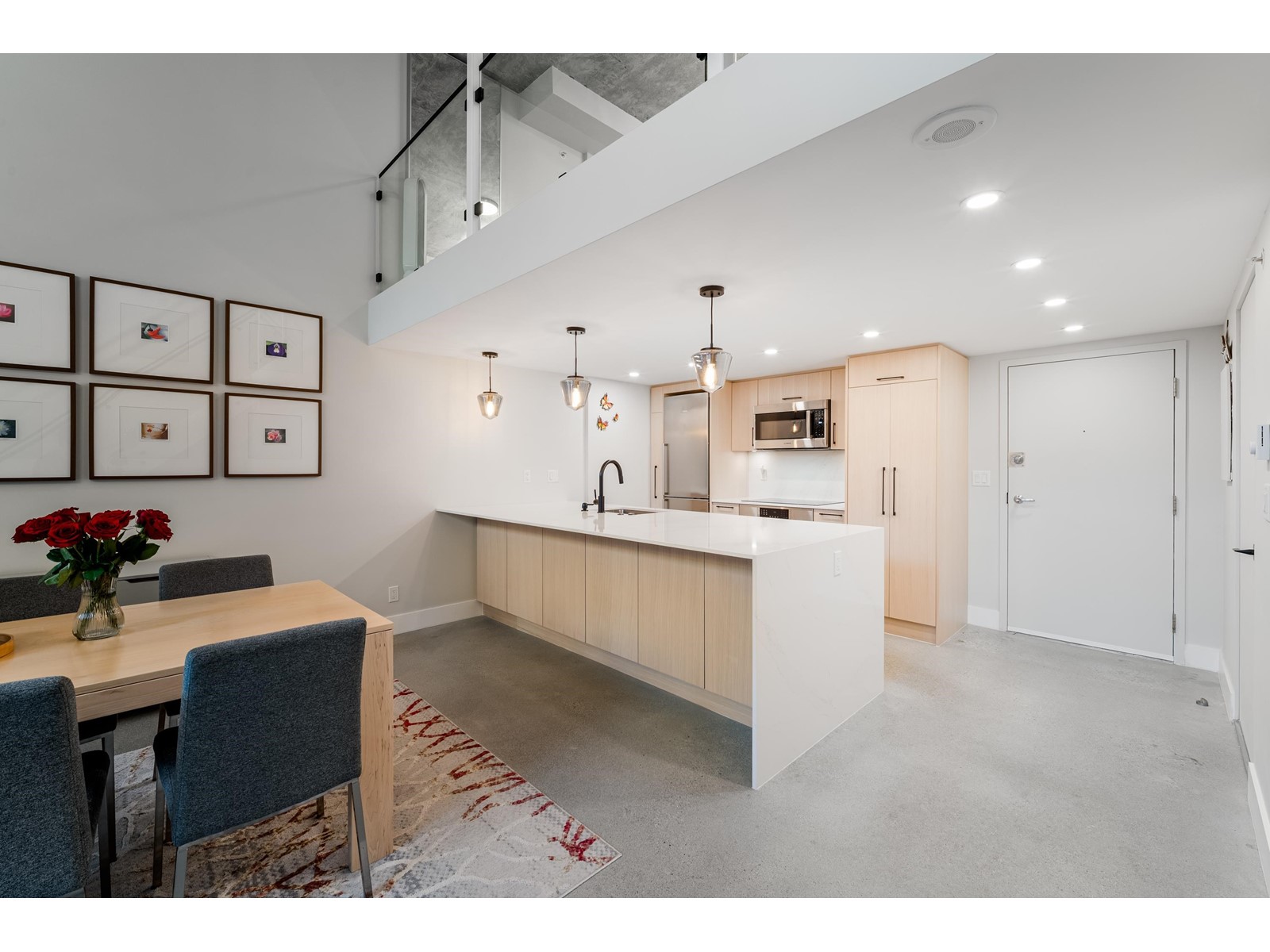$600.56 MonthlySpacious, sexy & stylish. This 2 level loft has been professionally renovated throughout with newly polished concrete floors and more in over $130,000 in upgrades. The added flex room can serve as an office/den/second bedroom. Soaring 15´ ceilings, double height windows, with following all brand new: custom kitchen with house sized island, bathroom, engineered wood flooring upstairs, Bosch stainless appliances, wood cabinetry & designer lighting. The 280 SF upstairs loft is large enough for king sized furnishings & offers a large walk in closet as well. This home comes complete with dining table, chairs, sofa & king bed. The Space is a very well run building with a healthy contingency, rentals are permitted with a 30 days minimum, 2 pets allowed. This amazing loft comes with 1 parking. (id:39665)