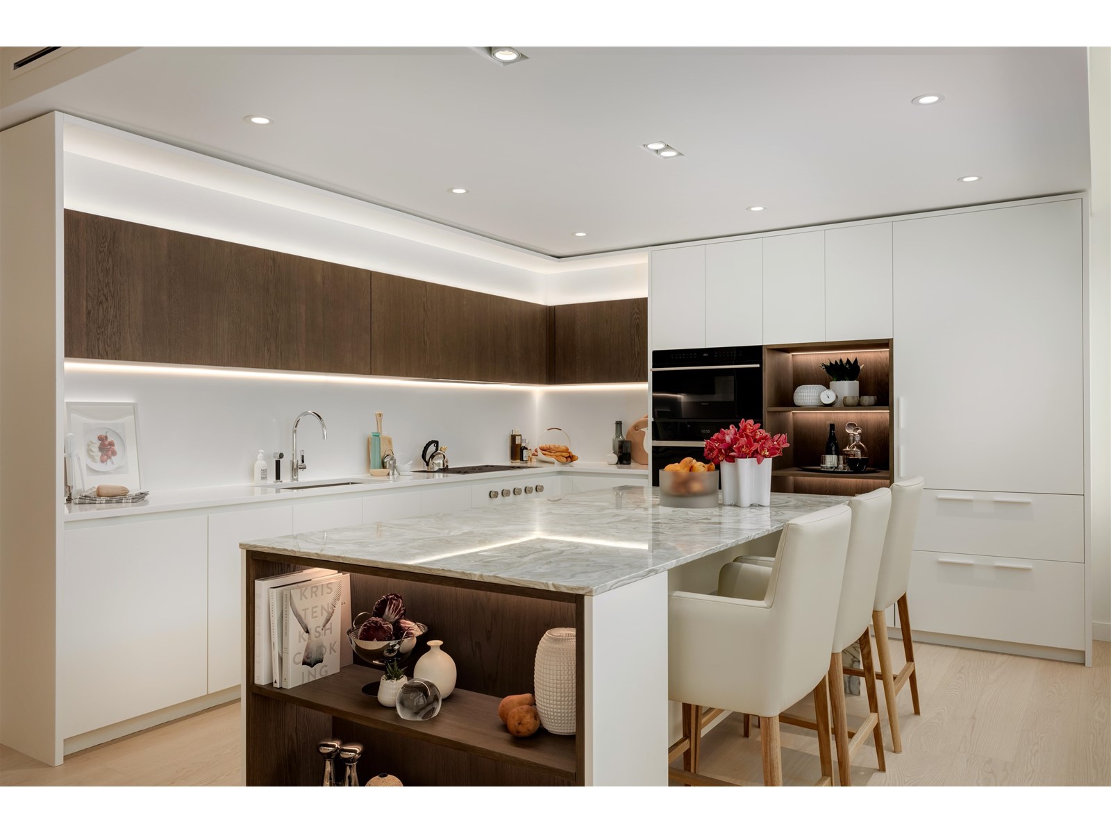 $716.73 MonthlySophisticated Home @ Legacy on Dunbar. A collection of 48 homes developed by Qualex-Landmark with interiors by Trepp Design Inc. This 1,197sf home offers 2 bedrms, 2 bathrms, flex rm & a solarium. Both bedrms provide balcony access, as does the living rm. The outdoor fireplace helps extend enjoyment of the West Coast´s climate. The kitchen is equipped with Italian cabinetry, marble kitchen isl with a waterfall edge, Sub Zero & Wolf appliances, Dornbracht faucet & under-counter wine fridge. The principal ensuite provides double glass entry doors, a free-standing bathtub, frameless glass shower enclosure, private lavatory & stone feature wall. 2 parking stalls equipped with EV charging capacity. Building amenities incl fitness centre, sauna & rooftop lounge. This home expected to be available summer 2023. (id:39665)