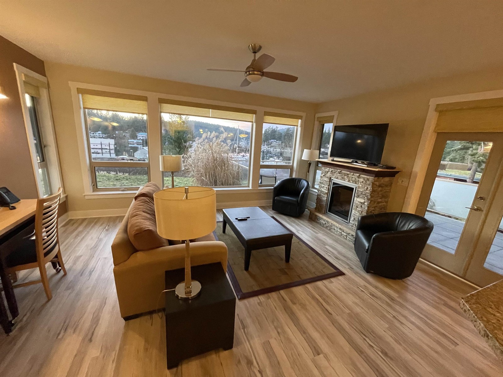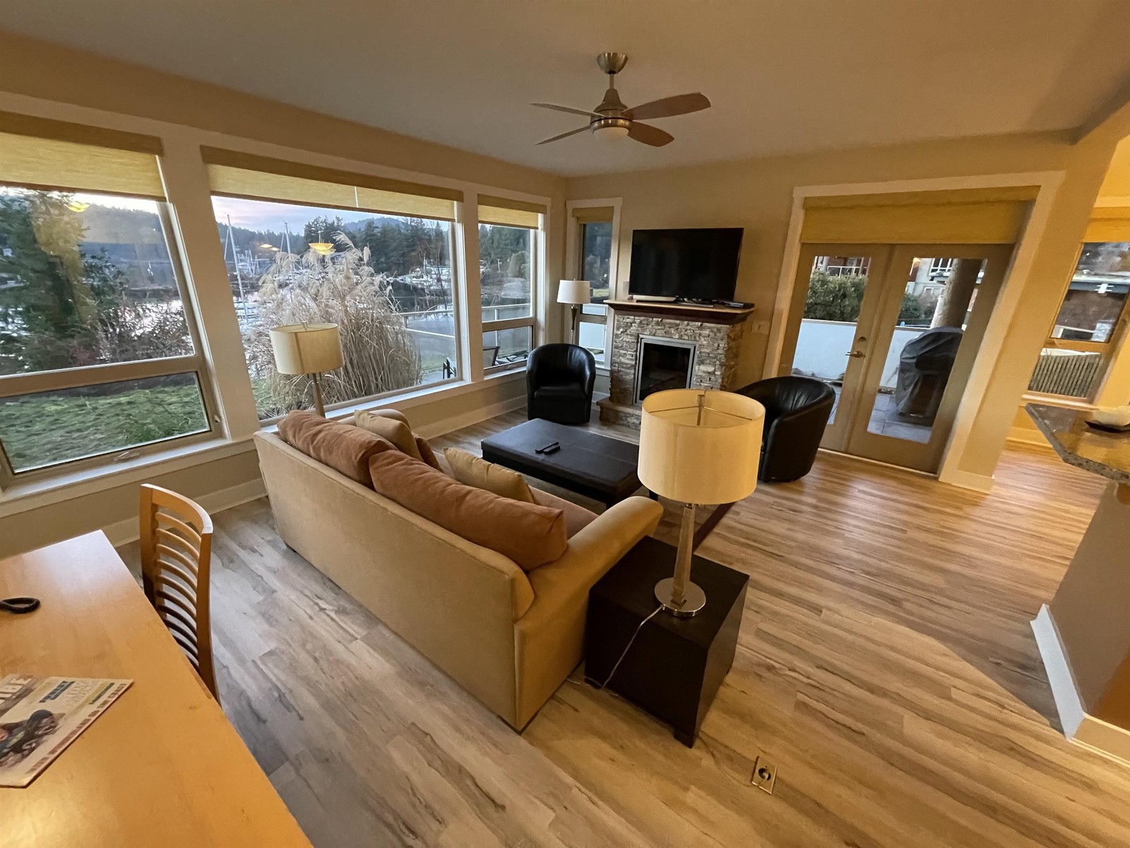 $676.49 MonthlyThe Painted Boat Resort & Spa is an exclusive development sitting on a stunning 5 acre waterfront property * offering 1/4 share ownership. Quality west coast post & beam construction in a gorgeous natural rural setting. This luxurious 2 bdrm ground level, corner unit villa comes fully furnished and serviced for all your needs. Spa like ensuite * soaker tub overlooks private patio & ocean * radiant heating under tile & wood flooring * spacious open plan enjoys active harbour & marina views. Large sunny corner patio allows you to enjoy the outdoor infinity pool and hot tub. Exercise pavilion w/a view. Seasonal gourmet rest on site is a destination for locals. Occupancy based on 5 yr rotation schedule. ALL expenses incl taxes as part of maint fee. Rental pool your share to offset fees (id:39665)