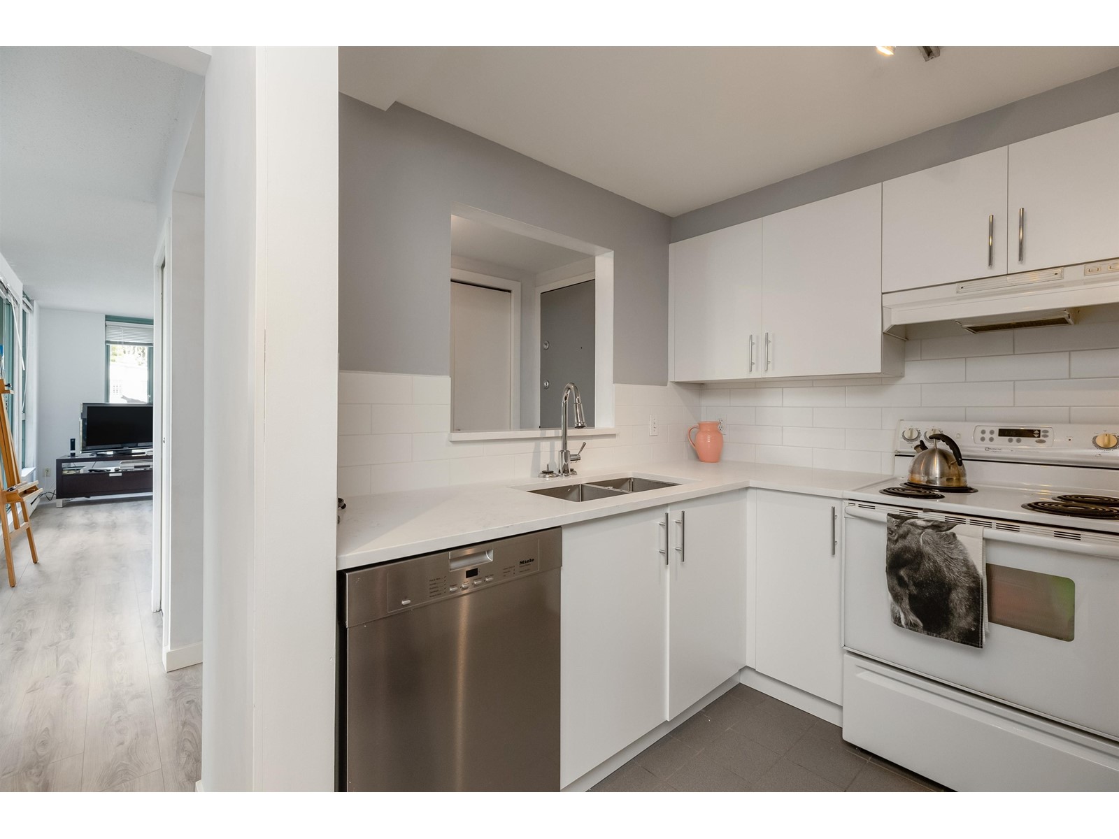 $382.64 MonthlySteps to the beach - don´t miss this 697 sqft 1-bedroom + large den at the pet + rental friendly Coral Court. Coral Court is a very well-run strata complete with secured parking, in suite laundry, indoor pool, hot tub, sauna, gym, meeting rooms, racquetball court. Featuring new laminate flooring throughout, new paint, updated kitchen with s/s appliances, double basin sink, quartz counters and subway tile backsplash, and renovated bathroom with new tile surround, quartz vanity and floating glass shelves. Bright, open layout with wrap around patio and large den for home office or 2nd bedroom. Step outside to Sunset Beach or onto the Aquabus to Granville Island, or walk the Seawall to English Bay and the shops, galleries + restaurants of the West End and Yaletown. Call today! (id:39665)