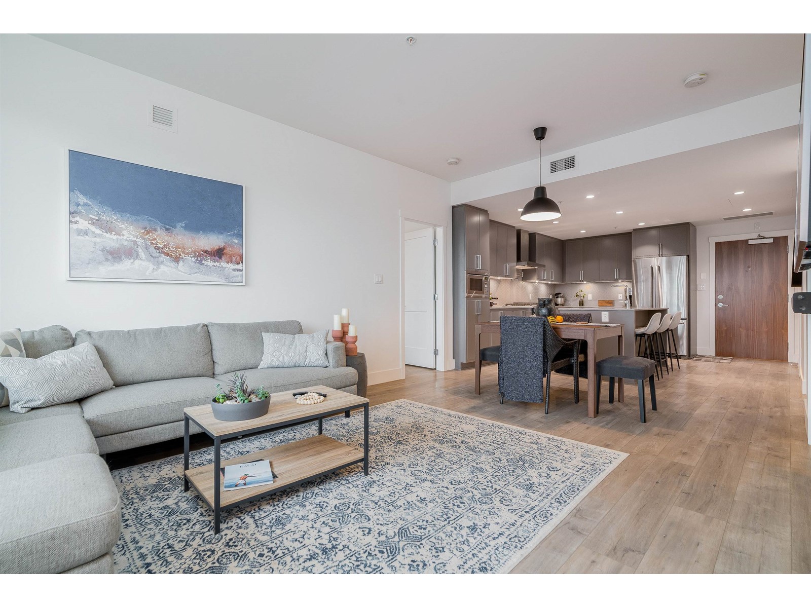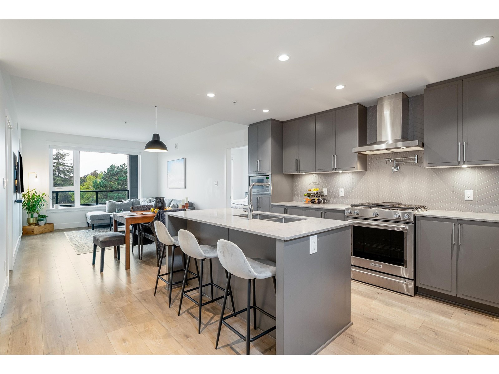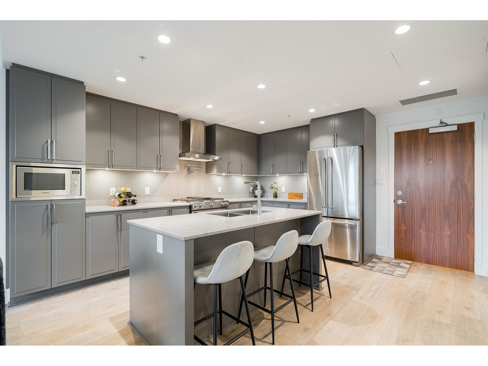 $437.11 MonthlyPresenting a move-in ready 2-bedroom + large den home at Forte by Streetside, in the heart of Burnaby Heights. A desirable location to call home with schools, Confederation Park, Eileen Dailly Pool & Fitness Centre, off-leash dog park and an incredible array of dining options and amenities just steps away. This 2020-built home features spacious and bright open-concept layout with upgraded builder finishes: Caesarstone counters, reverse shaker-style cabinetry with warm undercabinet lighting, designer colour scheme, laminate flooring throughout, stainless steel appliance package, convenient pot filler above stove, and energy efficient VRF system for heating/cooling for maximum comfort. Two large bedrooms including large primary bedroom with walk-in closet and spa-inspired ensuite bathroom. Entertain guests on the rooftop terrace BBQ area and communal gardens. Complete with secured parking, storage locker, and Travelers new home warranty. Pets & rentals allowed with restrictions. Call today! (id:39665)