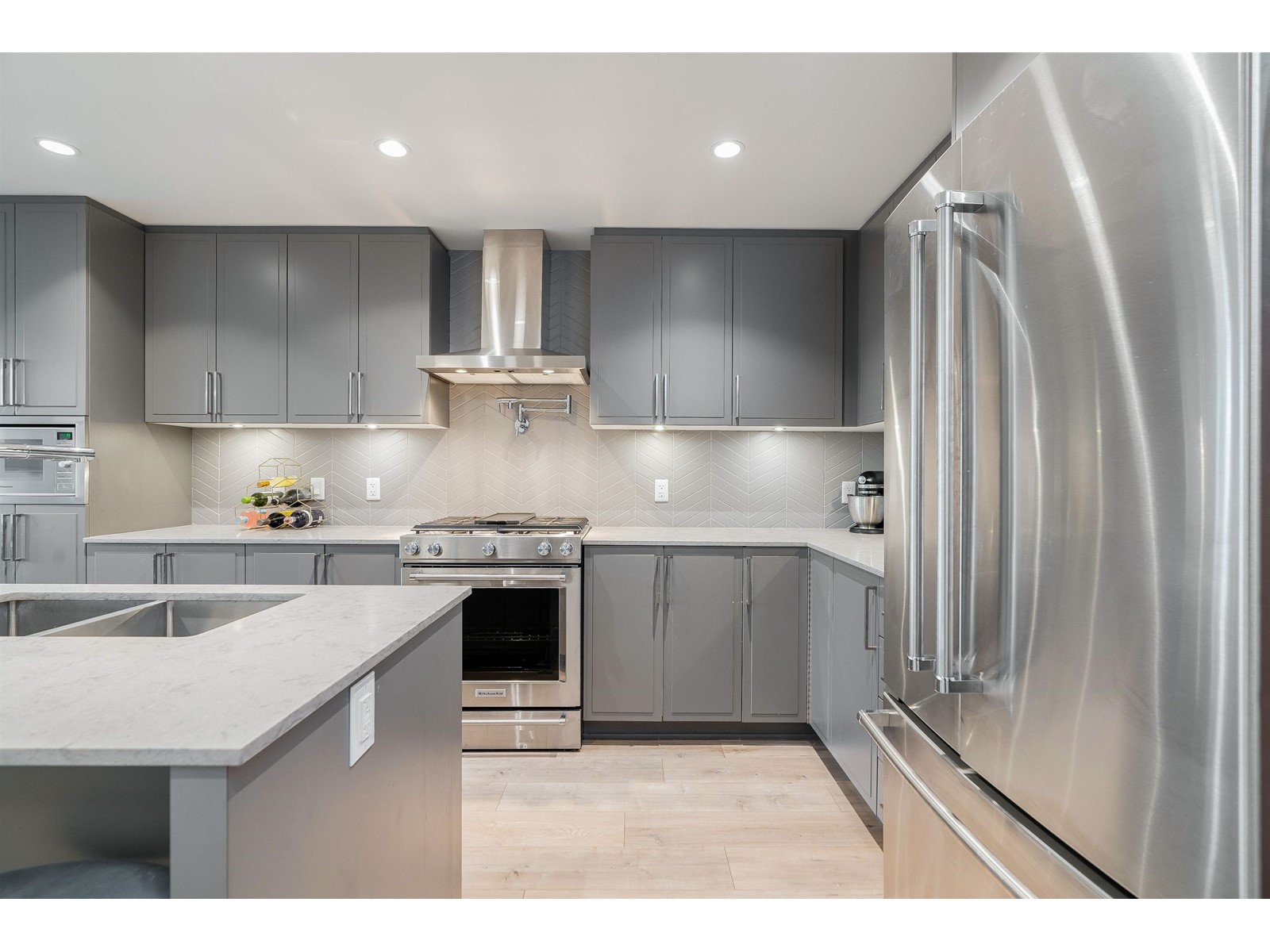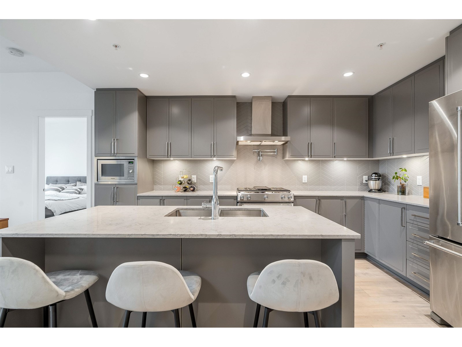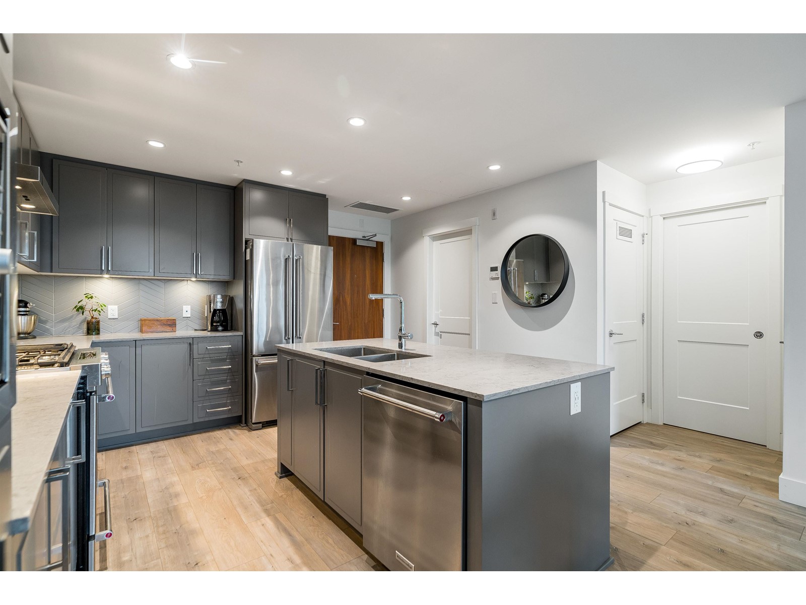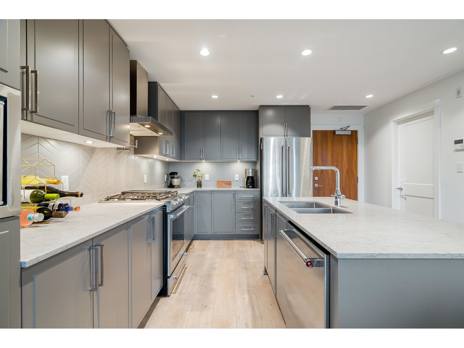 $437.11 MonthlyPresenting a move-in ready 2-bedroom + large den home at Forte by Streetside, in the heart of Burnaby Heights. A desirable location to call home with schools, Confederation Park, Eileen Dailly Pool & Fitness Centre, off-leash dog park and an incredible array of dining options and amenities just steps away. This 2020-built home features spacious and bright open-concept layout with upgraded builder finishes: Caesarstone counters, reverse shaker-style cabinetry with warm undercabinet lighting, designer colour scheme, laminate flooring throughout, stainless steel appliance package, convenient pot filler above stove, and energy efficient VRF system for heating/cooling for maximum comfort. Two large bedrooms including large primary bedroom with walk-in closet and spa-inspired ensuite bathroom. Entertain guests on the rooftop terrace BBQ area and communal gardens. Complete with secured parking, storage locker, and Travelers new home warranty. Pets & rentals allowed with restrictions. Call today! (id:39665)