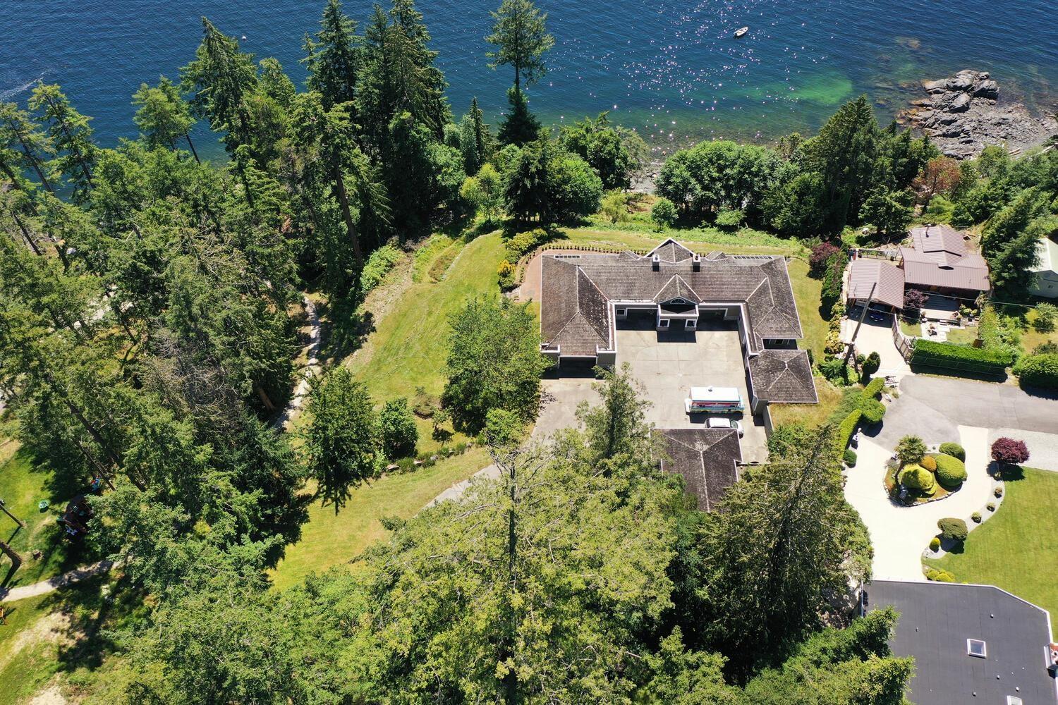 Discover breathtaking PANORAMIC OCEAN VIEWS from this SOUTH facing WATERFRONT property located in the heart of Madeira Park with easy BEACH access. Perched on a 2.3 acre lot that features a private beach, lush fruit + fir trees, stunning greenery + potential for accessory buildings for rental revenue. The combination of southern exposure plus floor to ceiling windows drenches the entire home in natural light. There are 2 large living rooms and a spacious family room with direct access to the patio and with views of the ocean. There is also a separate wing which has 5 bedrooms and 2 bathrooms, perfect for accommodating guests or family. It's truly Sunshine Coast living at its finest. Inquire today for your private showing. (id:39665)