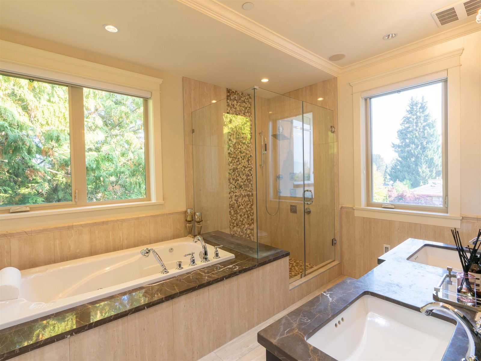 Bespoke custom built luxury residence situated on a beautifully landscaped private estate in prestigious Shaughnessy neighborhood. Exquisite design, master craftsmanship and custom millwork create 6 bed 7 bath 6,027 SF house on almost 11,000 SFT lot with top of line appliance, crystal chandeliers, full height wainscoting, Douglas blinds. Enjoy access to resort spa, sauna, steam room,home theatre, billiard room and wet bar plus outdoor terrace. A majestic home that is second to none. (id:39665)