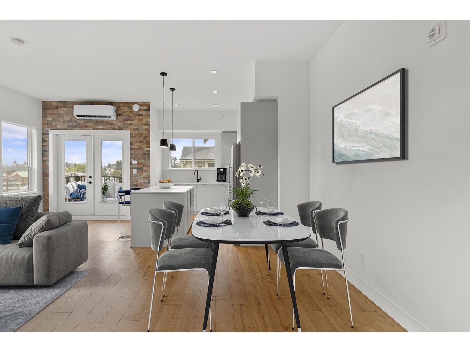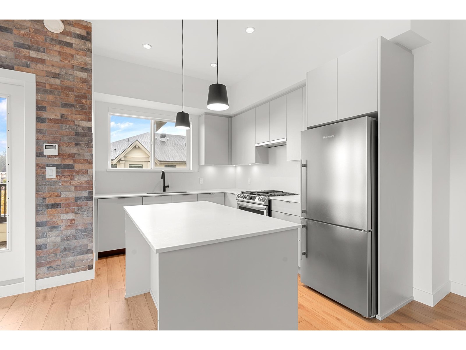 Bright and spacious PENTHOUSE CORNER Suite located in a trendy "Historic Downtown" Abbotsford with a modern flair. South facing open concept with lots of natural light, 9' ceilings, luxury appliances, air conditioning, brick feature wall, chef inspired kitchen with 5 burner gas-range and quality industrial finishes. Bedrooms are situated on opposite sides for maximum privacy. Master Bedroom has a generous walk through closet leading to Ensuite with double sinks and millwork mirror feature. Amenities include outdoor private & secure courtyard with a playground, garden planter boxes, meeting boardroom and office work stations. Easy access to transit and highway. Walking distance to Boutique restaurants, Breweries, Coffee shops, bakeries, Jubilee Park and much more. (id:39665)