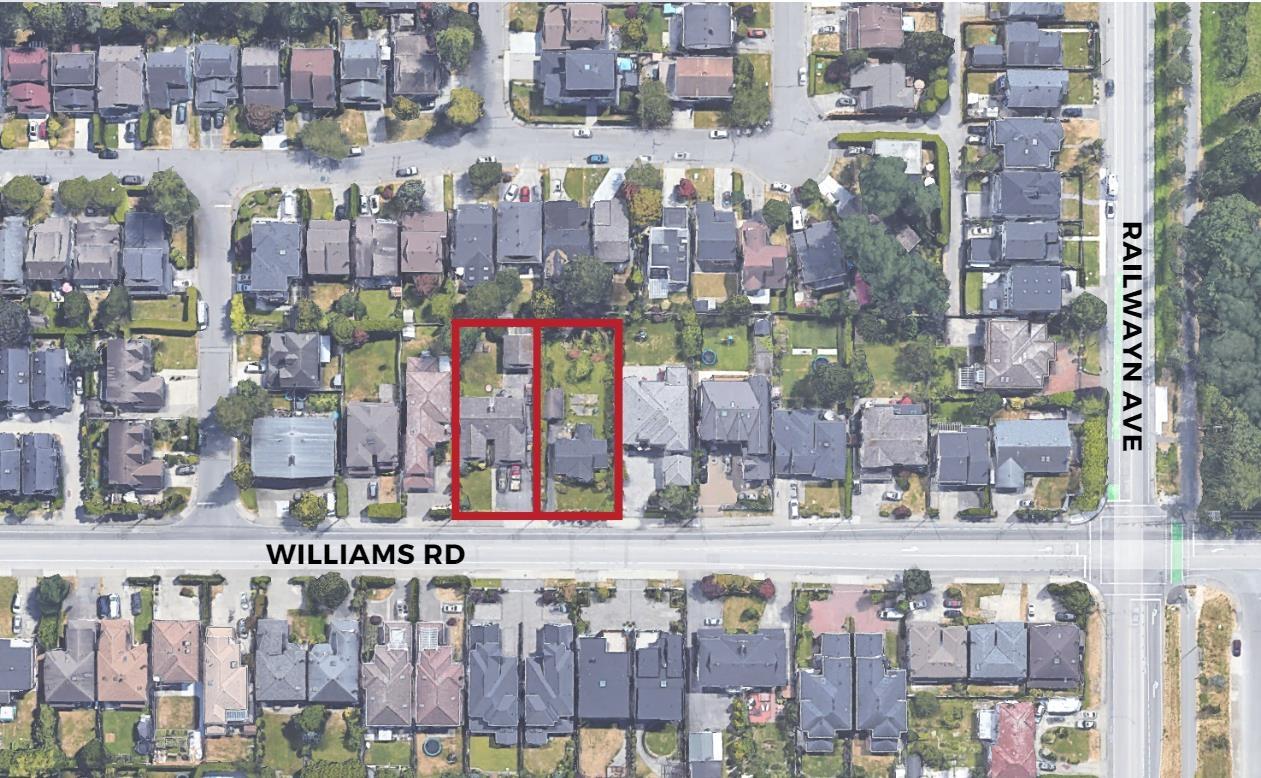 This assembled development site is situated along Williams Rd between No 2 Rd and Railway Ave. Combined with the neighboring property, this site boasts approx. 21,600 sq.ft. in total with great frontage. The City of Richmond Official Community Plan and the Arterial Road Land Use Policy have designated the block to be densified into duplex/triplex developments. With more young families and downsizers in Richmond, similar townhouse and duplex/triplex projects in the surrounding area have gotten great success. Walking distance and short drives to elementary & secondary schools. Great amenities nearby with parks and shopping. Within 10 minutes drive to both Steveston Harbour and Richmond Centre. Create your desirable multi-duplex/triplex community here at this amazing location. Call for info! (id:39665)