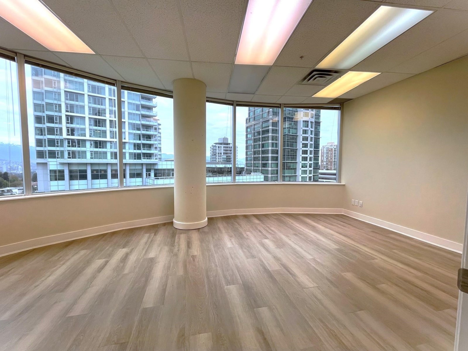 $1,057.28 MonthlyWonderful Penthouse view office at Crystal Office Tower, which is located above the popular Crystal mall at corner of Willingdon and Kingsway at the Metrotown area. Corner unit with 1306 sq/ft and five individual offices by the big window on all sides and a bonus kitchenette. 3-hours free parking for clients. Short walk to Skytrain, Superstore, Burnaby Library and Metrotown Centre. Easy access to Highway #1 and transportation. Fantastic northwest view of City and mountains. First Unit to the left as you come up the elevator. Perfect for lawyers, dentist and professionals (id:39665)