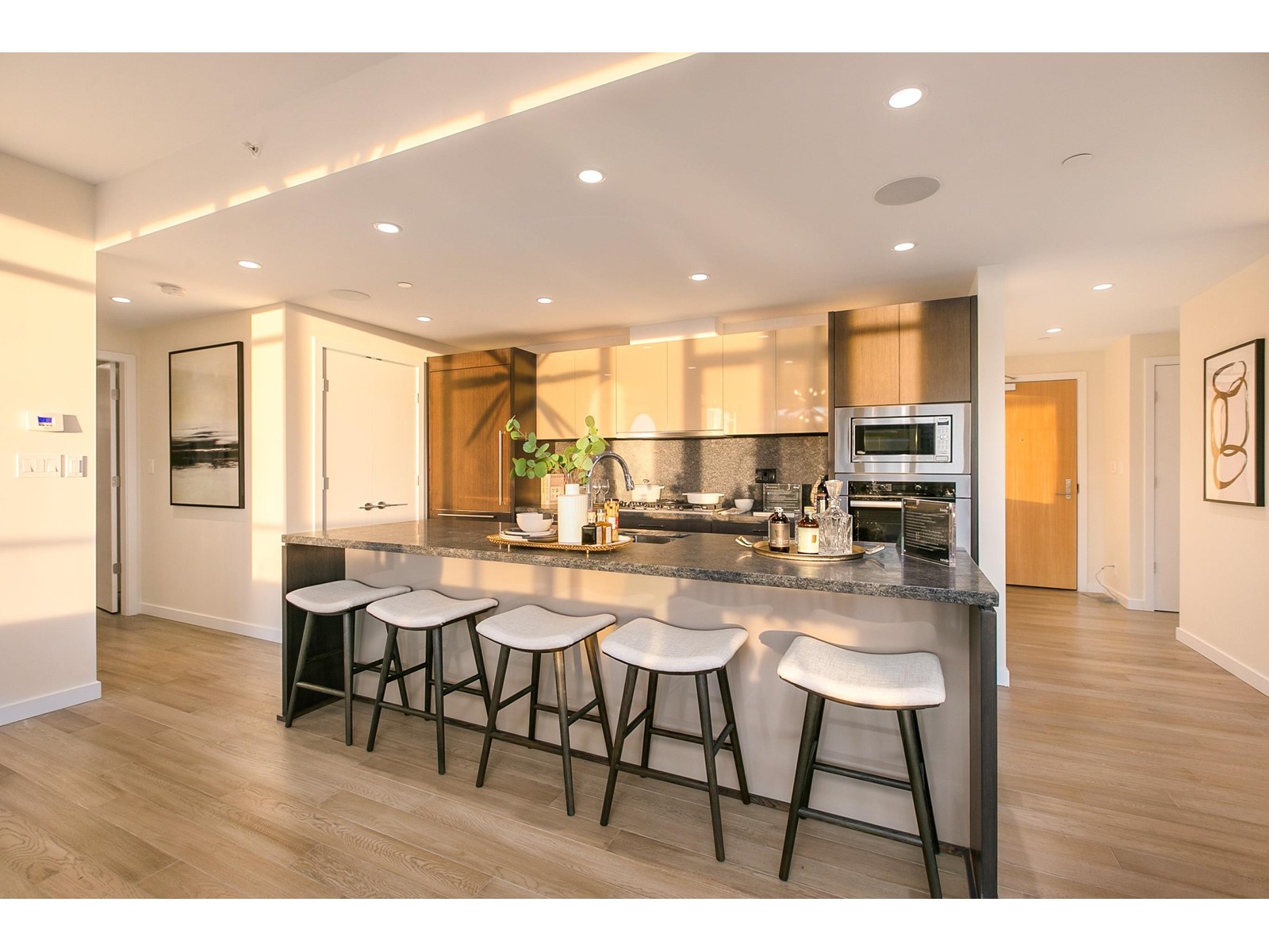 $1,259.23 MonthlyPresenting the Sub-Penthouse at Evelyn's Forest Edge 4, by the award winning Onni Group. West Vancouver's ultimate in luxury and discerning living. This South facing two bedroom & den dream home is open-plan with 1,945 sqft of interior living space & over 1,400sqft of balconies. Gorgeous wide plank oak hardwood flooring flows throughout the suite, and the kitchen features a Sub-Zero fridge/freezer and Miele cooking facilities. The master bedroom offers a luxurious en-suite with marble counter tops and a walk-in closet. Additional interior features include air conditioning a full size washer/dryer, Savant Home Tech system, automated lighting and sound control with built-in speakers, secure parking and more. (id:39665)
