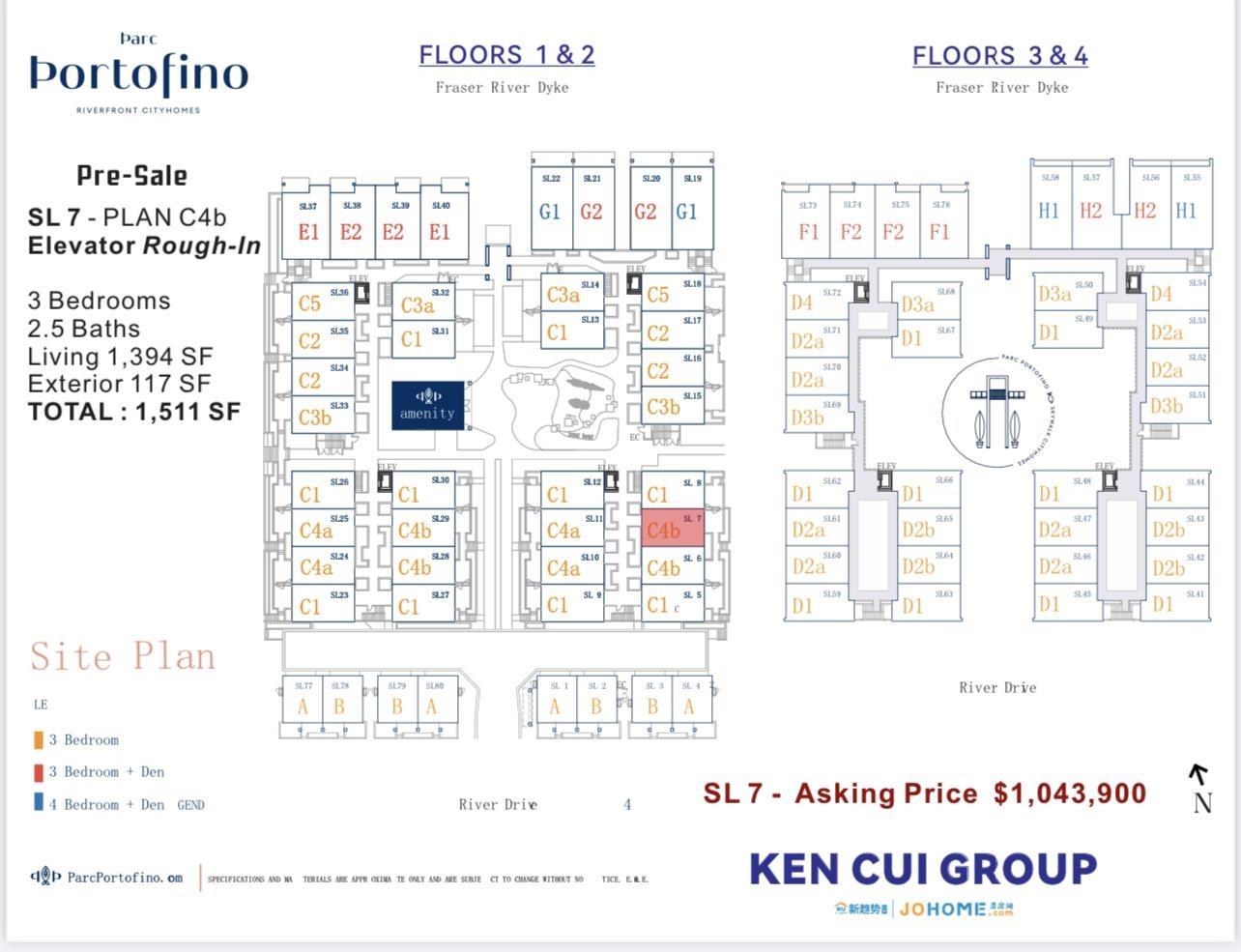 $444.80 MonthlyParc Portofino PRESALE Riverfront Townhome built by DAVA Developments - Completion in Late 2024. This ground level home is 1 of the only 2 C4b plans units in this development with Rough-in Elevator facilities design. INNOVATIVE Design, open functional floorplan with air-conditioning, 9'ceilings in Living Room. 3 Bdrms & 2.5 Bathrms. Laminate flooring, high-gloss kitchen cabinetry with modern design & Quartz countertop. Main floor laundry/storage room. Secured 2 parking spots and outdoor patios. There is direct access to 4000 SF of Dyke trails walking/biking. Close to the Bridgeport station for easy access to the Canada Line. "Variety of different floorplan available, spacious 3 to 4 Bdrms units" Call today for more information. (id:39665)