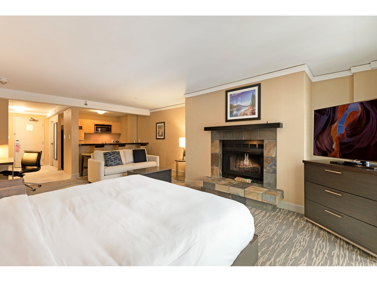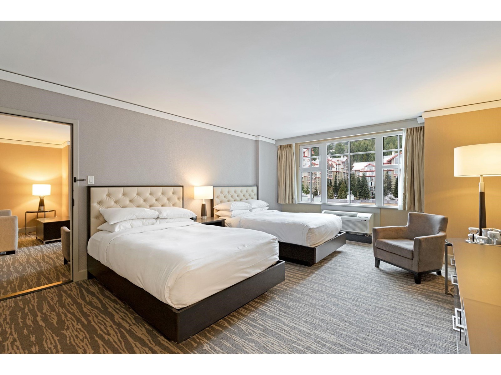 $1,397 MonthlySteps from the base of Whistler Mountain, The Hilton Whistler Resort is an unrestricted owner-use hotel condo. Refurbished in 2018, this flexible, 'lock-off' floor plan is fully furnished with a King bed in 1 room and 2 double beds in the other room, and comes with 2 full bathrooms, a pull-out couch, kitchen with range, fireplace and balcony with one of the best village views of Whistler & Blackcomb Mountains. No limitation on owner use is perfect for families looking for more time in the resort compared to other hotel-condos. On-site amenities include pool, gym, hot-tub, tennis courts, spa, restaurant and sports bar. Hilton manages all rentals. No Airbnb. No room remodeling. Units 702 & 704 must be sold together. (id:39665)
