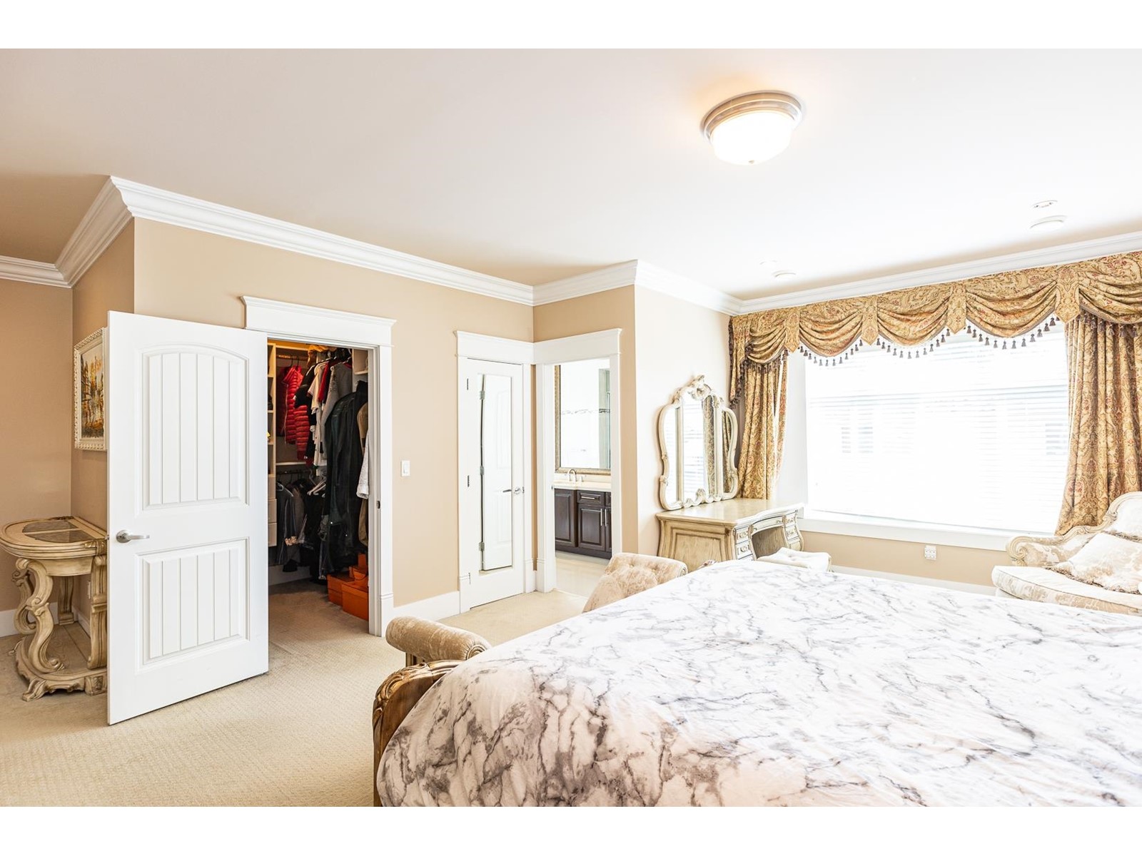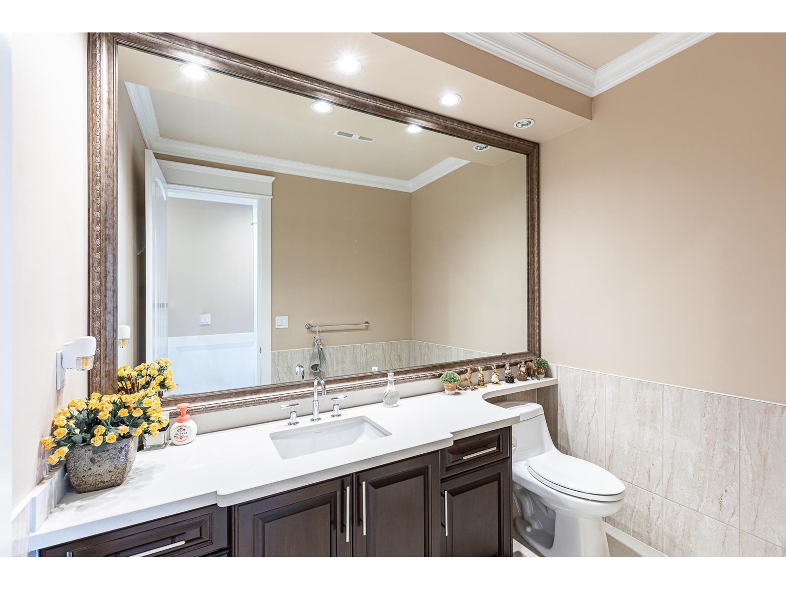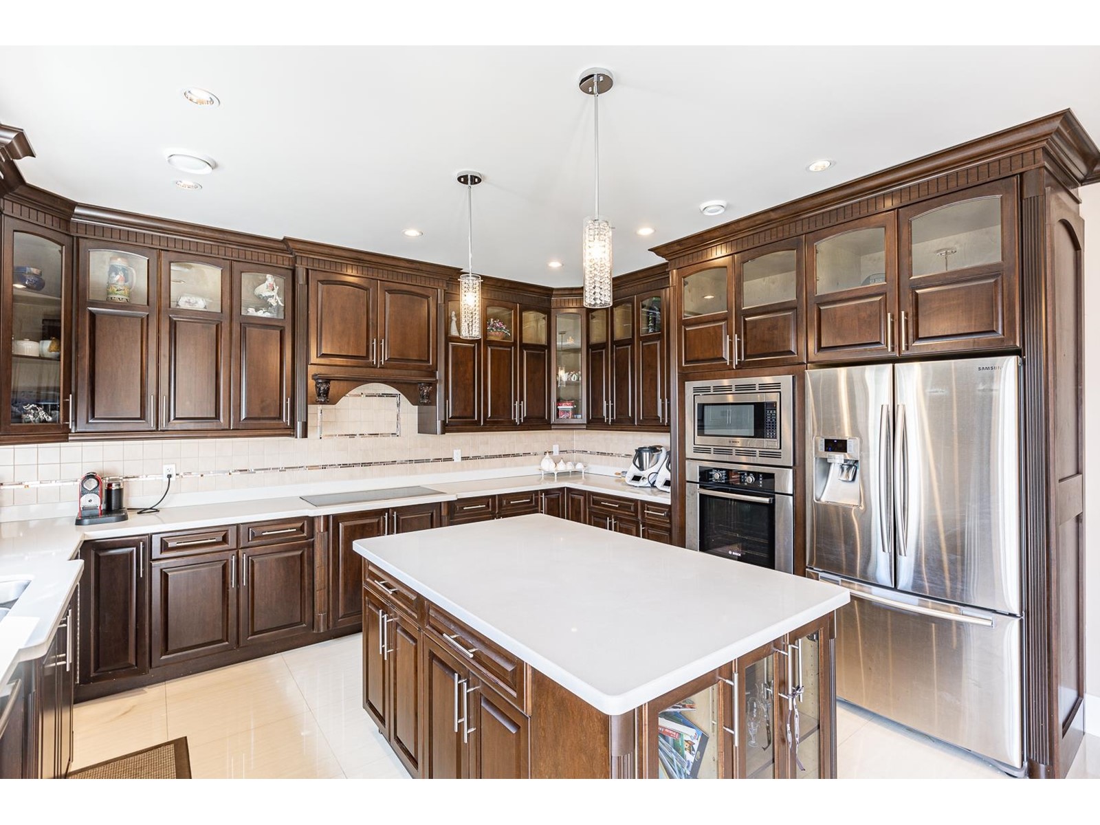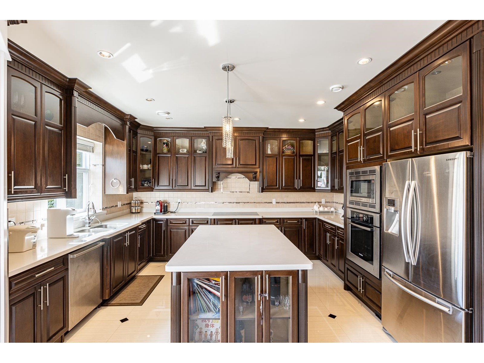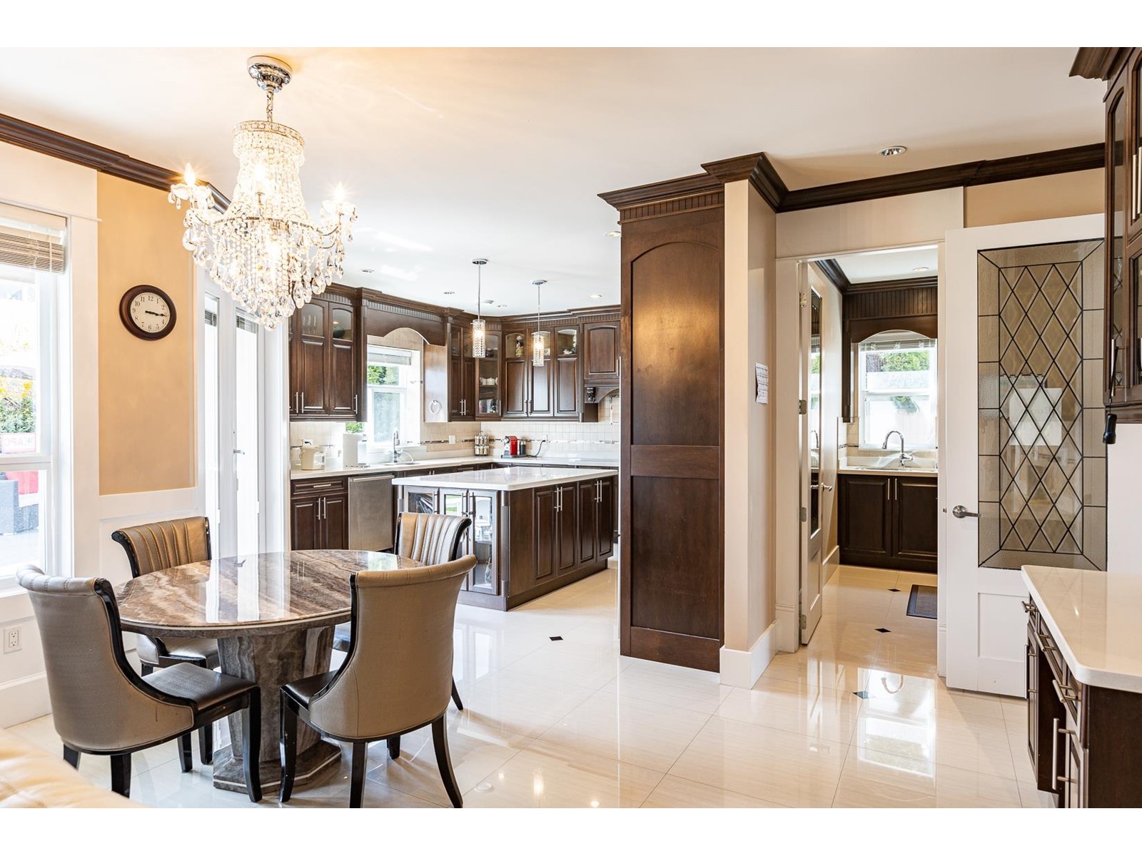 Beautiful and Luxurious custom build home in desirable garden city neighbourhood. Excellent comer lot of 9240 sqft with spacious living area over 3,950 sq ft. Great open floor plan features 16ft high ceilings in living, dining, and family room. Five bedrooms all with ensuites. Large wok kitchen and wet bar in theatre room. Quality material and workmanship and lots of other extras. A/C. Conveniently located to all levels of school and shopping. Lawn sprinkler system, landscaped, and fully fenced. (id:39665)