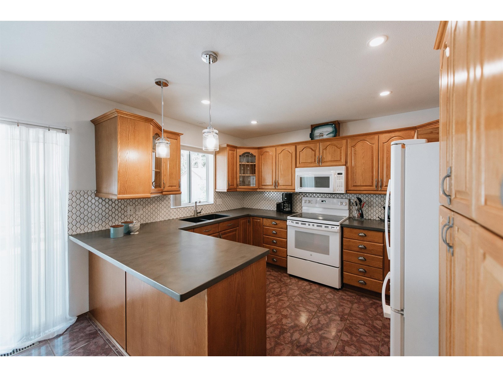 This is a true "investor alert" being a 2 bed, 2 bath home with large attached 1 bdrm suite on a newly RM7 zoned 1/4 acre lot allowing for 4 family dwellings! With two here already there's also the detached & insulated double garage of 600sf with 220 amp wiring... The solid, 2170sf home on concrete crawl space has had many recent upgrades including brand new natural gas furnace (2022), Corian kitchen countertops, bedroom carpets (2021), lighting fixtures etc. Roof only 7 yrs young on both structures. Yard is fenced & gated. Legal suite features its own laundry, HW tank & electrical sub panel. Plenty of parking. Fabulous location, near park, trails, shops, schools, bus stop... it's all right here! (id:39665)